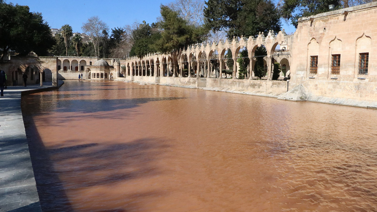 Şanlıurfa’nın simgesi olan, dünyanın tek doğal akvaryumu olarak bilinen tarihi Balıklıgöl de depremden etkilendi. Berrak ve mavi olan gölün suyu, depremin ardından çamur rengini aldı.