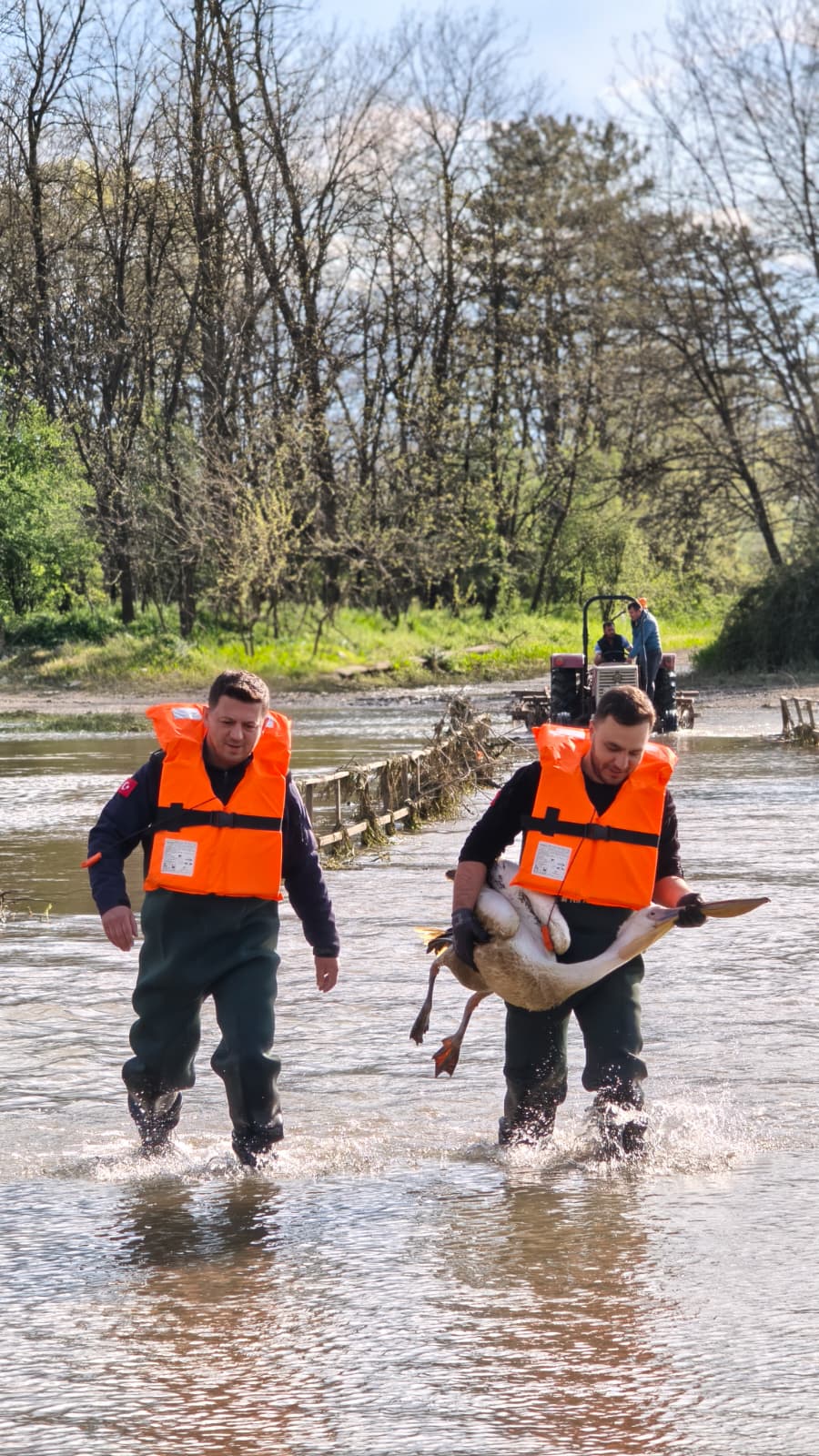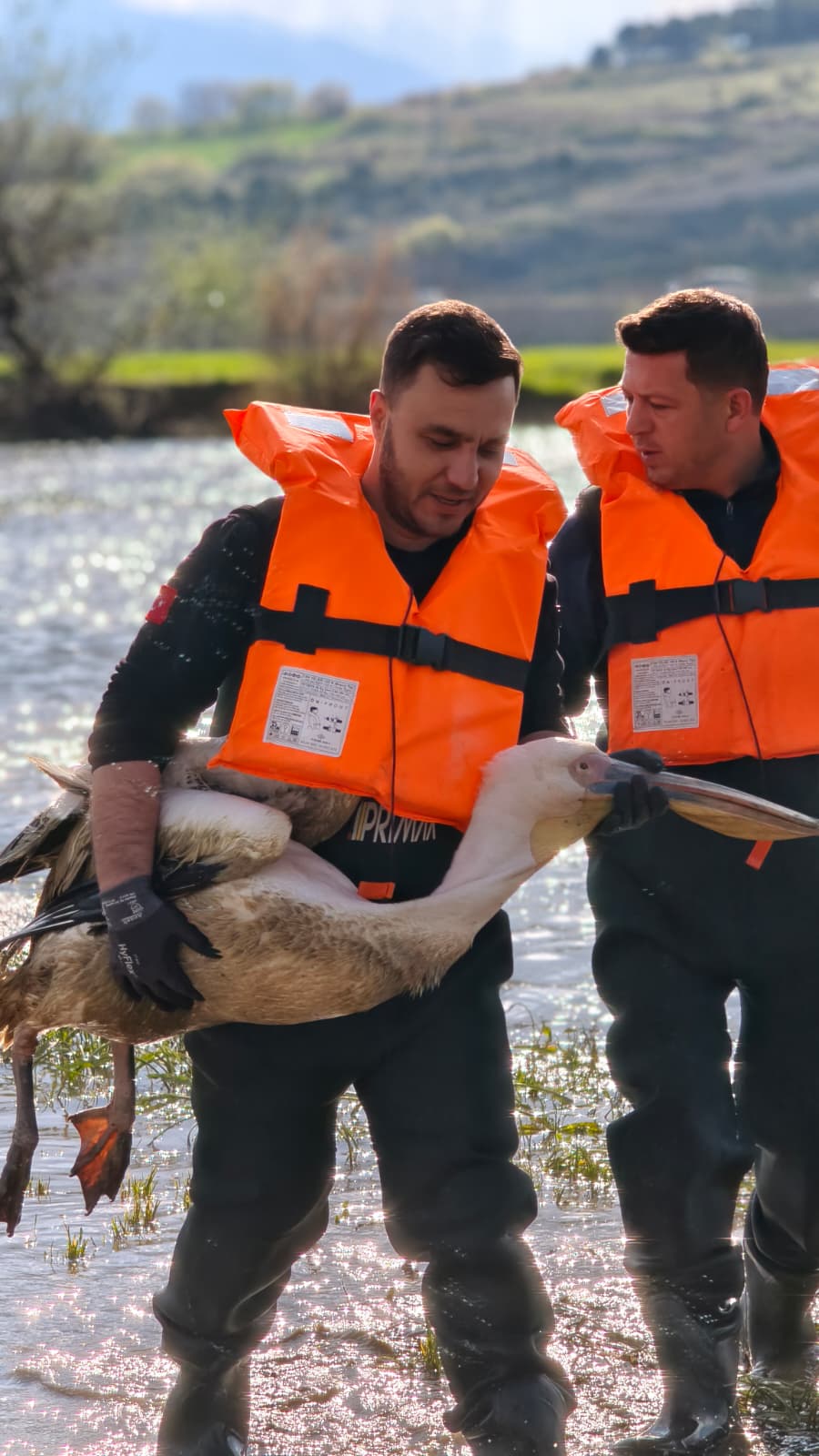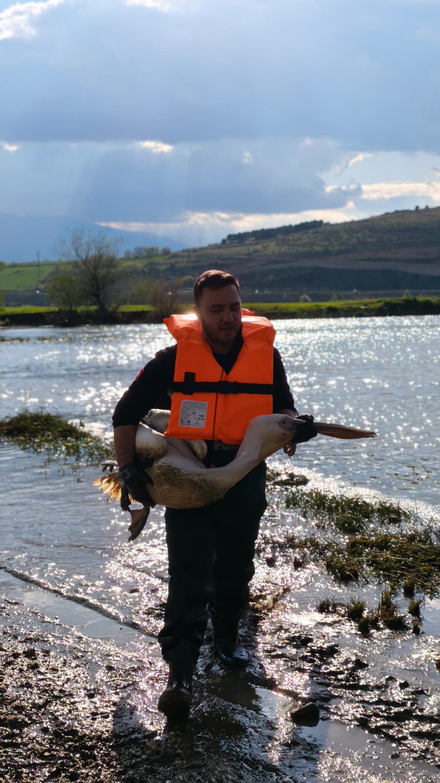 O anlar, cep telefonuyla görüntülendi. Yaralı pelikan ise tedavi edilmek üzere İnegöl Belediyesi Sahipsiz Hayvanlar Bakım ve Tedavi Merkezi’ne götürüldü.