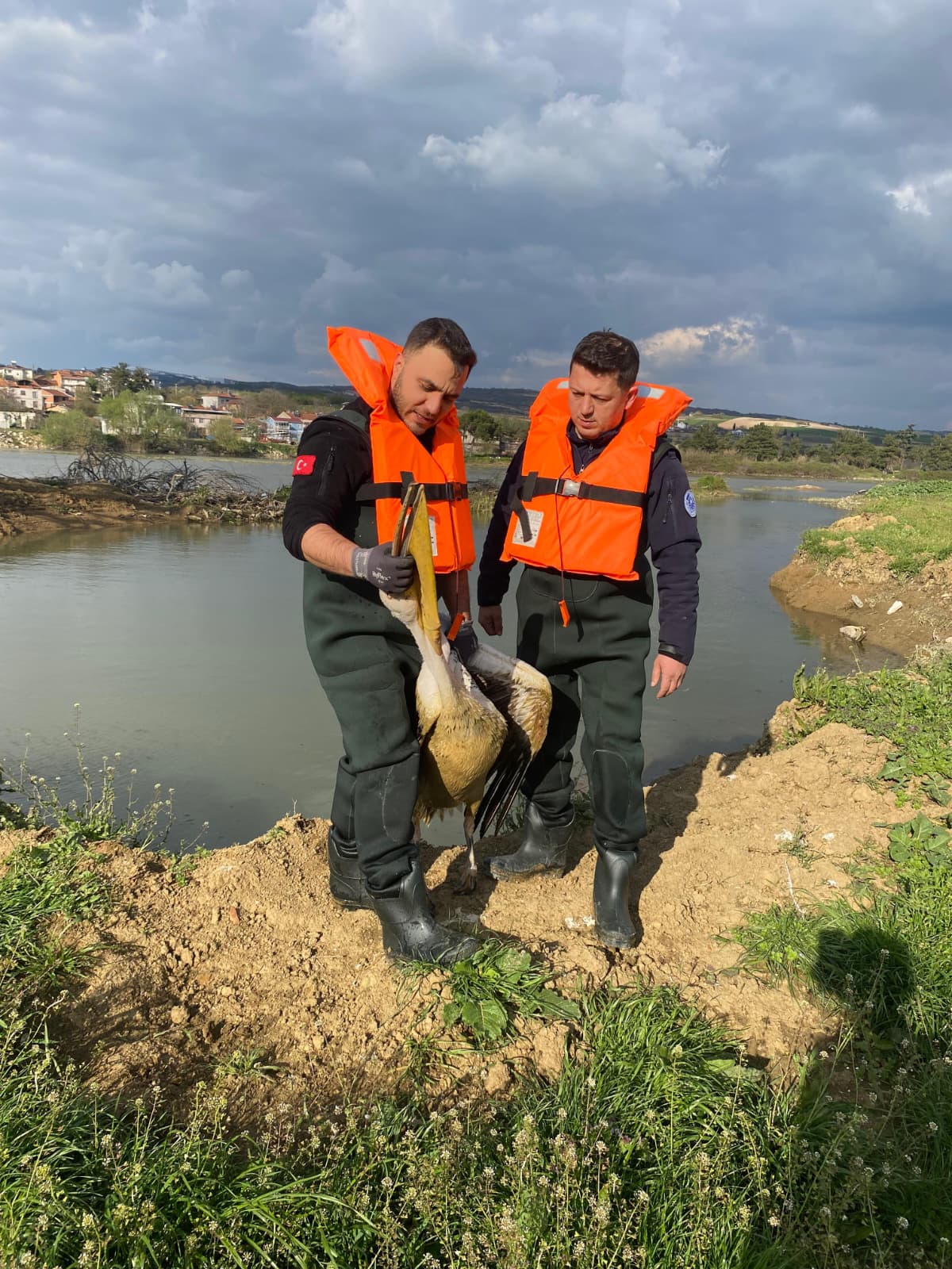 Boğazköy Barajı çevresinde dün öğle saatlerinde yürüyüş yapanlar, suda bitkilerin arasında çırpınan pelikanı fark edip, durumu 112 Acil Çağrı Merkezi’ne haber verdi. İhbar üzerine bölgeye İtfaiye Arama Kurtarma ekipleri sevk edildi. Suya uygun özel kıyafetlerini ve can yeleklerini giyerek kurtarma çalışması başlatan ekipler, sıkışan pelikanın kanatlarından yaralı olduğunu belirledi. Pelikan, bulunduğu yerden dikkatle çıkarıldı.