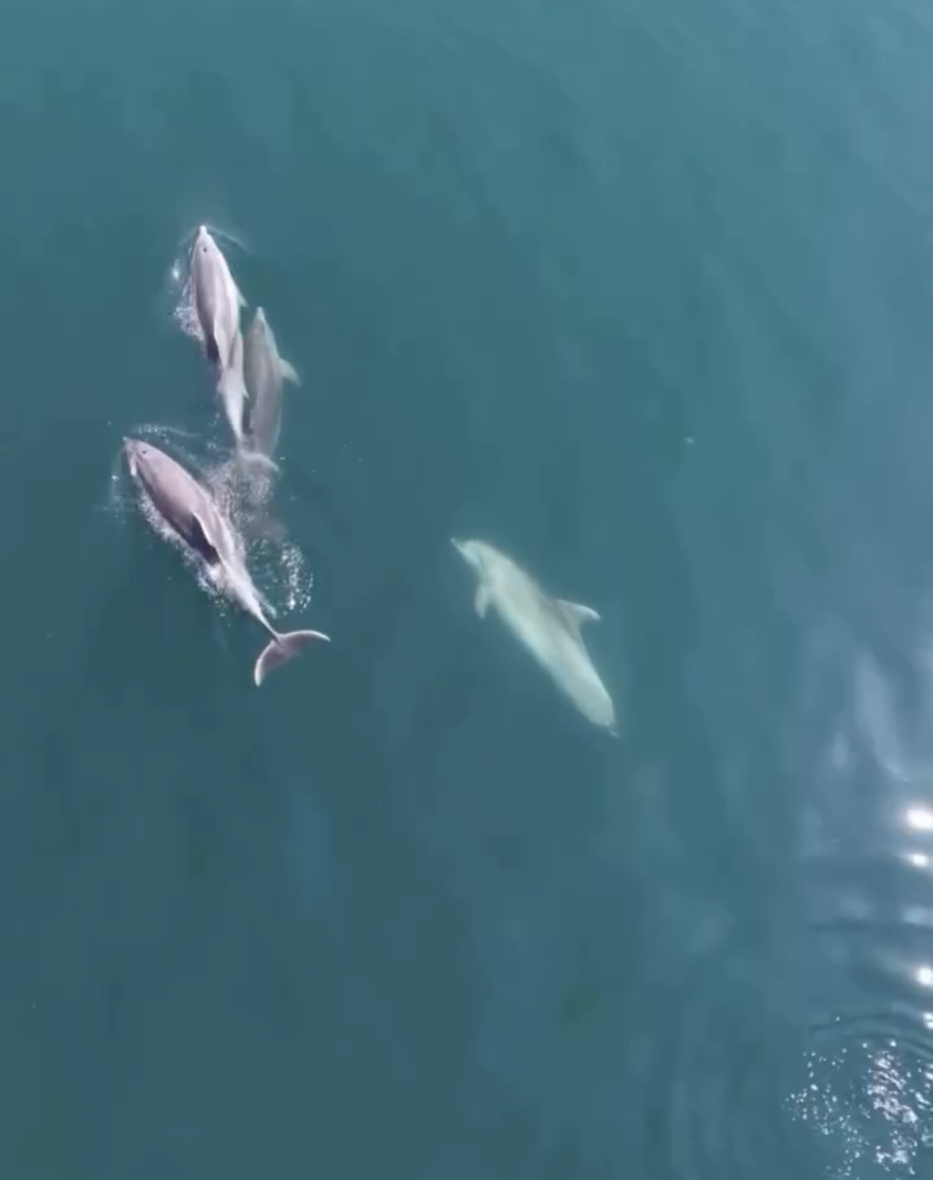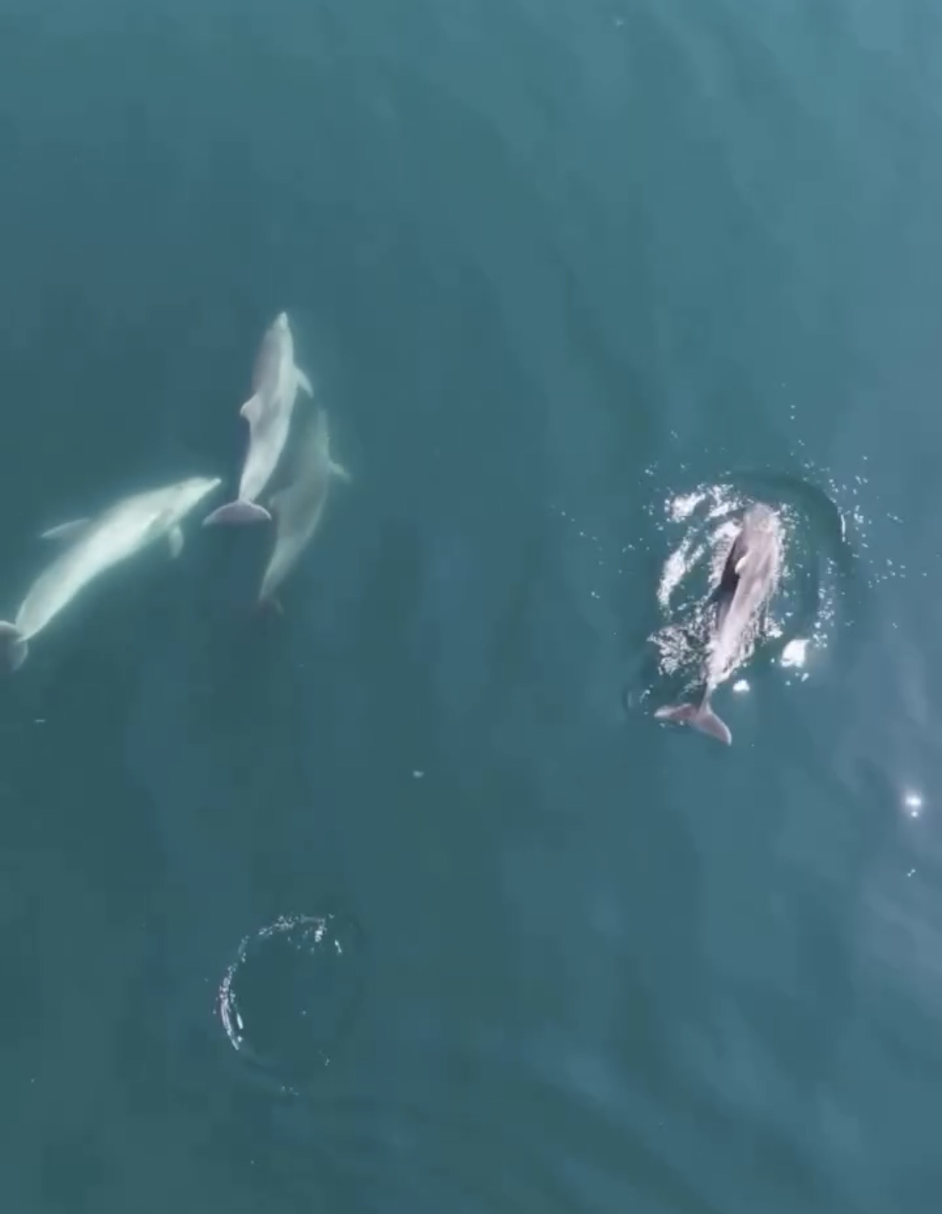 Kızılkum sahilinde vatandaşlar öğle saatlerinde kayalıklarda gezdikleri sırada kıyıya kadar gelen 4 yunus gördü. Suyun içinde adeta dans ederek yüzen yunuslar, çevredekiler tarafından cep telefonu ile kaydedildi. Yunuslar bir süre sonra dibe dalarak gözden kayboldu.