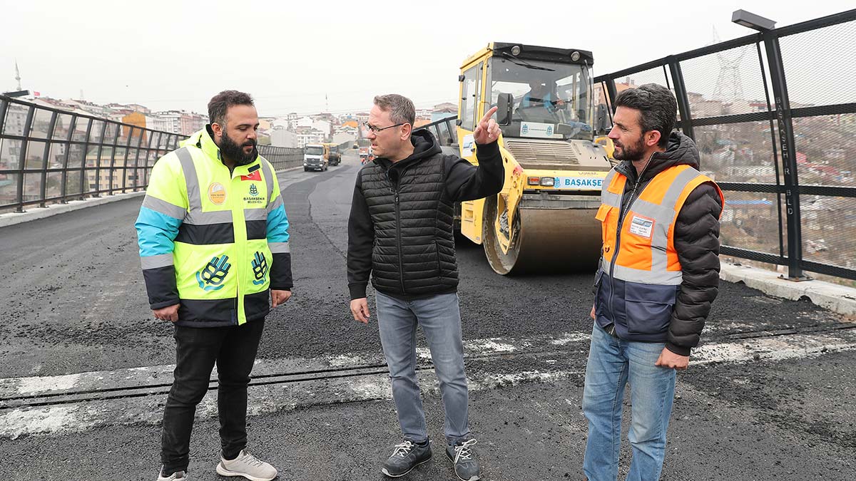 Başkan Kartoğlu’nun ikinci durağı Fen İşleri Müdürlüğü’ne bağlı ekiplerin yol yapım çalışmaları oldu. Güvercintepe Viyadüğü’ndeki asfaltlama çalışmalarını inceleyen Başkan Kartoğlu, “İlçe genelinde özellikle soğuk havalarda ve karla mücadele çalışmalarımızda zarar gören yollarımız ve kaldırımlarımızda ekiplerimiz çalışma yürütüyor. Güvercintepe Viyadüğü’nde de artık sona yaklaştık. Asfalt serim işlemimiz yapılıyor” ifadelerini kullandı.
