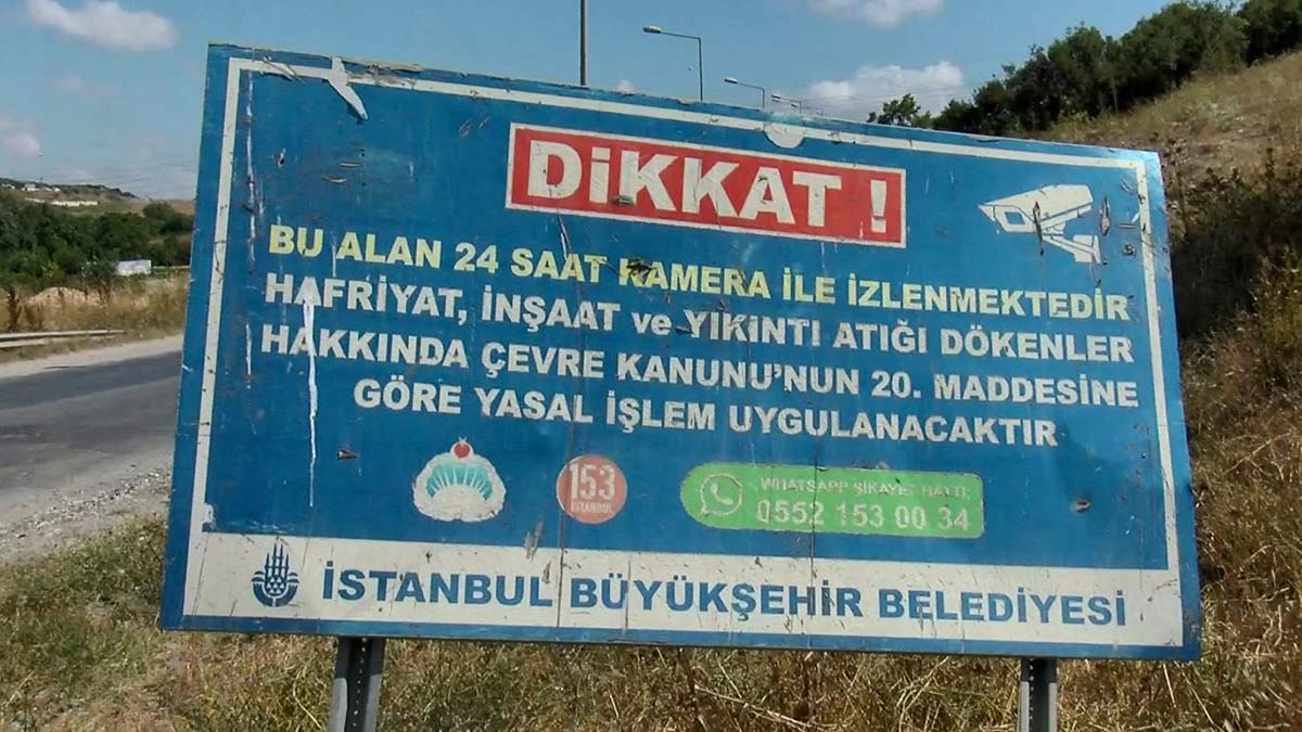 Altınşehir İstiklal Caddesi’nde kaçak hafriyatı önlemek için konulan İBB’ye ait bir tabelada, ‘Bu alan 24 saat kamera ile izlenmektedir, hafriyat atığı dökenlere yasal işlem uygulanacaktır’ uyarısı yapılmasına rağmen, çevrede kamera sistemi olmadığı öne sürüldü.