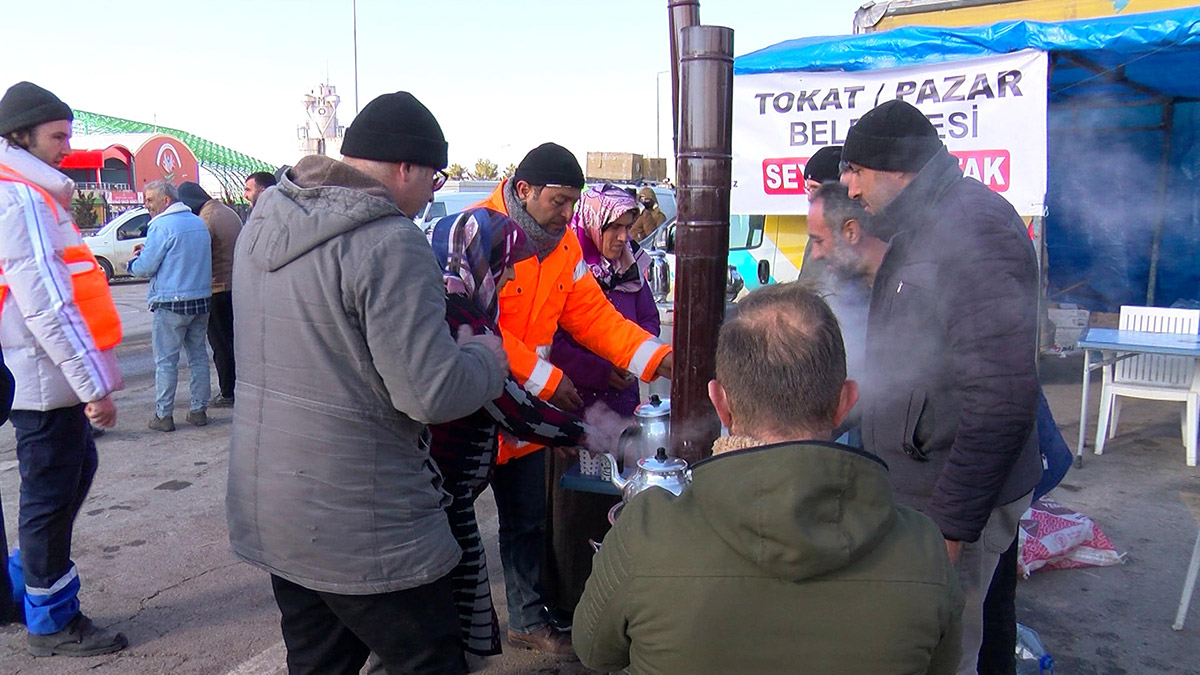 Tokat’ın Pazar Belediye Başkanı Erdoğan Yılmaz, Kahramanmaraş merkezli 7.7 ve 7.6 büyüklüğündeki depremden sonra yardım malzemeleri ve işçilerle bölgeye geldi. İlk olarak Adıyaman’ın Gölbaşı ilçesine giden Yılmaz, arama kurtarma ekipleriyle depremzedeler için çorba yapıp, çay demledi. Burada 3 gün kalan Yılmaz, TIR’lara yüklenen malzemeyi Malatya’nın Yeşilyurt ilçesine taşıdı. Sanayi tipi ocak, dev kazanlar ve büyük boy semaverini Yeşilyurt’ta kaldırıma yerleştiren Yılmaz, pişirdiği çorba ve demlediği çayı arama kurtarma ekipleri, görevliler ve depremzedelere ikram ediyor. Depremde vefat edenler için helva da kavuran Yılmaz’ın ocağı, 24 saat boyunca tütüyor. İsteyene çorba, isteyene çay ikram eden Yılmaz’ın hizmeti, depremzedeleri ve görevlileri de mutlu ediyor.