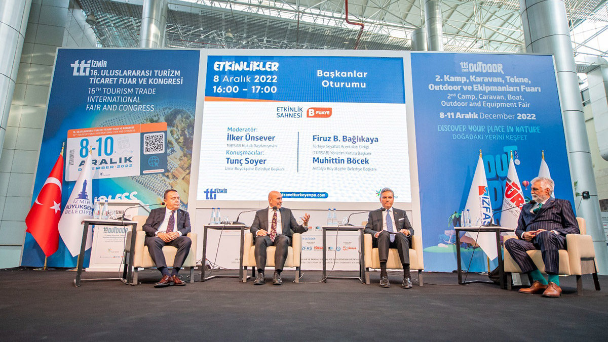 Kültür ve Turizm Bakanlığı himayesinde, İzmir Büyükşehir Belediyesi ev sahipliğinde, TÜRSAB Fuarcılık A.Ş ve İZFAŞ iş birliğinde düzenlenen 16. TTI İzmir Uluslararası Turizm Ticaret Fuar ve Kongresi ve TTI Outdoor 2. Kamp, Karavan, Tekne, Outdoor ve Ekipmanları Fuarı kapılarını açtı. Birbirinden renkli etkinliklerin yer aldığı fuarda “Başkanlar Oturumu” da yapıldı. Moderatörlüğünü TÜRSAB Hukuk Danışmanı İlker Ülsever’in yaptığı oturumda; İzmir Büyükşehir Belediye Başkanı Tunç Soyer, Antalya Büyükşehir Belediye Başkanı Muhittin Böcek ve Türkiye Seyahat Acentaları Birliği (TÜRSAB) Yönetim Kurulu Başkanı Firuz Bağlıkaya da konuşmacı olarak yer aldı.