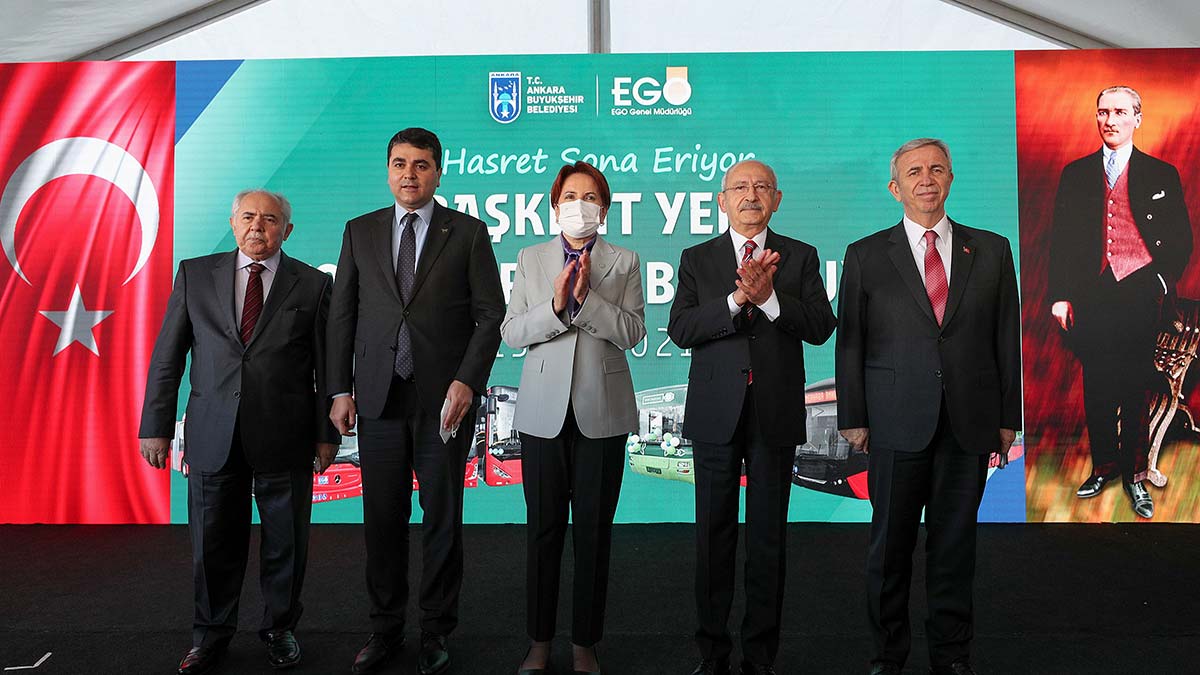 Büyükşehir Belediye Başkanı Mansur Yavaş’ın ev sahipliğinde ilk seferlerine çıkmadan önce 85 otobüs için EGO 3. Bölge Yerleşkesi’nde “Hasret Sona Eriyor: Başkent Yeni Otobüsleri İle Buluşuyor” programı düzenlendi. Programa CHP Genel Başkanı Kemal Kılıçdaroğlu, İYİ Parti Genel Başkanı Meral Akşener, Demokrat Parti Genel Başkanı Gültekin Uysal, Saadet Partisi Genel Başkan Yardımcısı Prof. Dr. Sabri Tekir, Milletvekilleri, Genel Başkan Yardımcıları, ilçe belediye başkanları, Büyükşehir Belediyesi Meclis üyeleri ve bürokratları, STK temsilcileri ile çok sayıda muhtar katıldı.