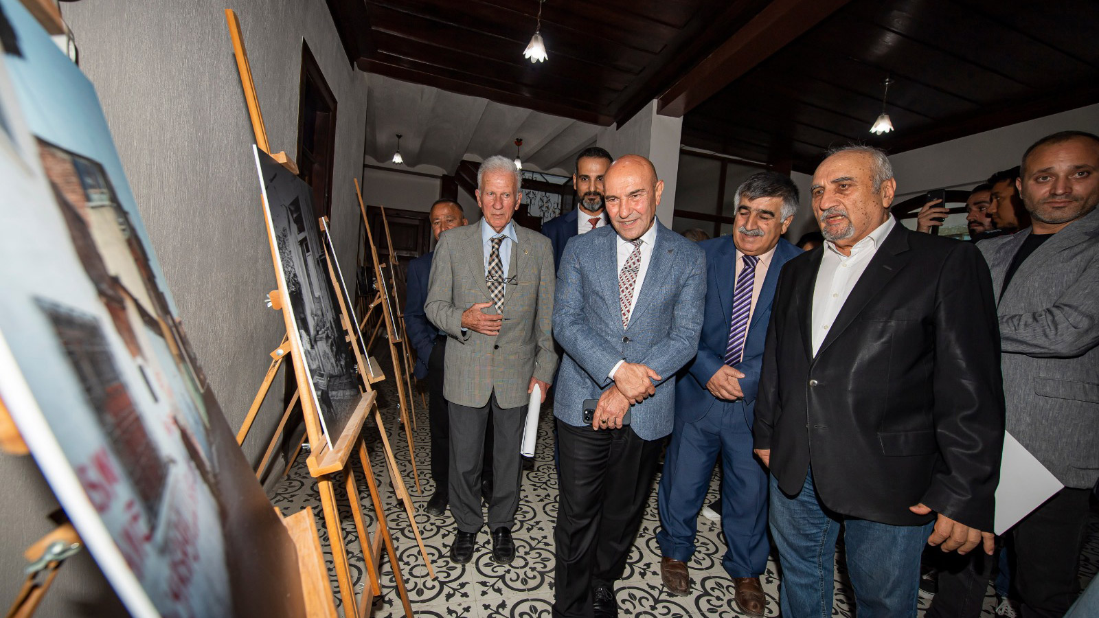 Bıçakçı Han’da “Fotoğrafçının Gözünden Basmane” ve Bedriye Gülay Beşikçi’nin resim sergisini gezen Başkan Soyer, çok heyecanlı olduğunu belirterek “Orhan Beşikçi ile bir araya geldiğimiz zaman bilirim ki hep yeni şeyler öğreneceğiz. Bugün de öyle oldu. Yine buraya büyük bir coşku ile geldim. En büyük teşekkürü ona etmek lazım. İyi ki var ve iyi ki bu şehre bu kadar sahip çıkıyor” dedi.