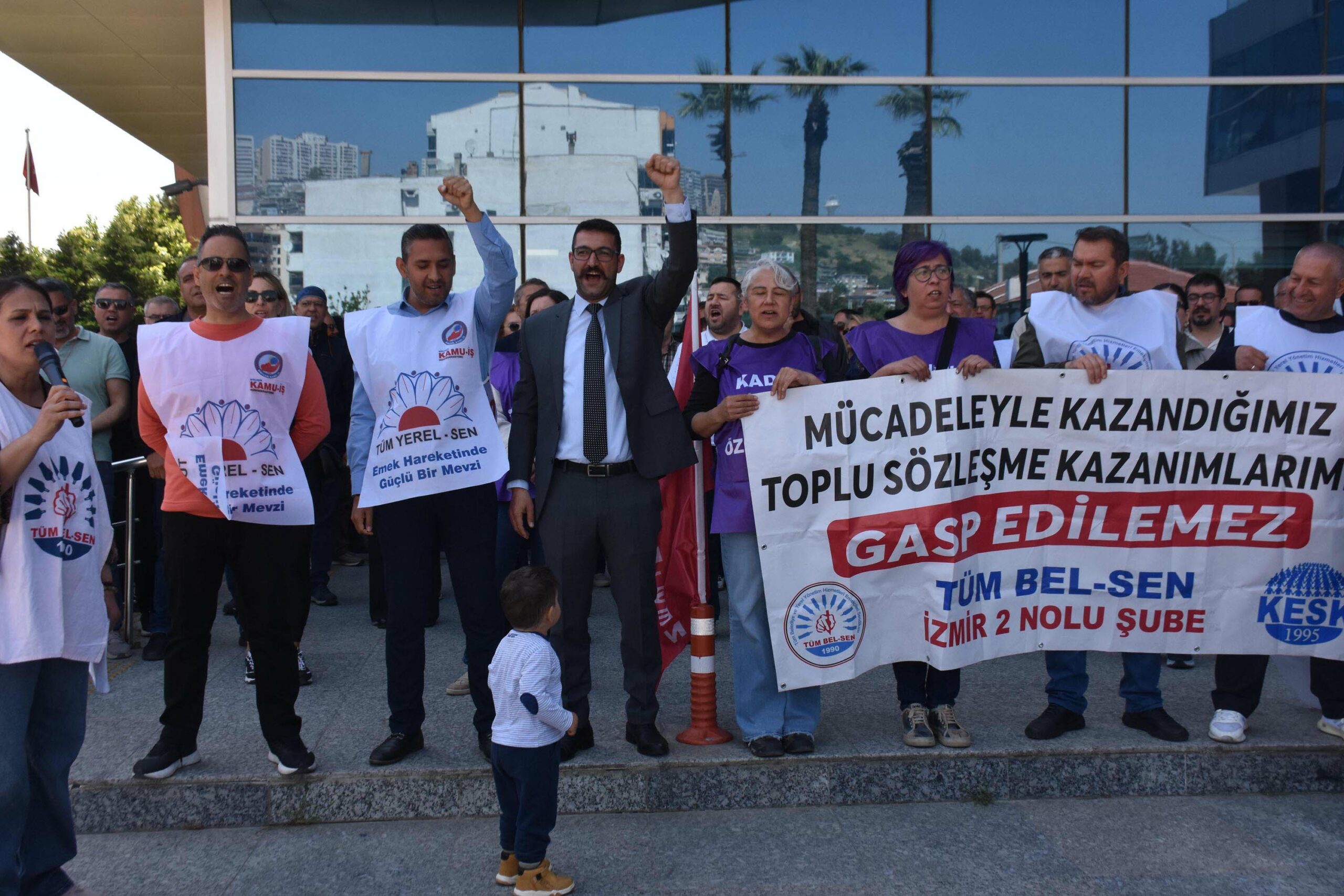 İzmir’in Bayraklı ilçesinde belediye ile Tüm Bel-Sen İzmir 2 No’lu Şube arasında yürütülen Toplu İş Sözleşmesi (TİS) görüşmelerinde uzlaşma sağlanamaması ve mevcut hakların geriye çekildiği gerekçesiyle memurların 2 hafta önce başlattığı iş bırakma eylemi bugün de devam etti.
