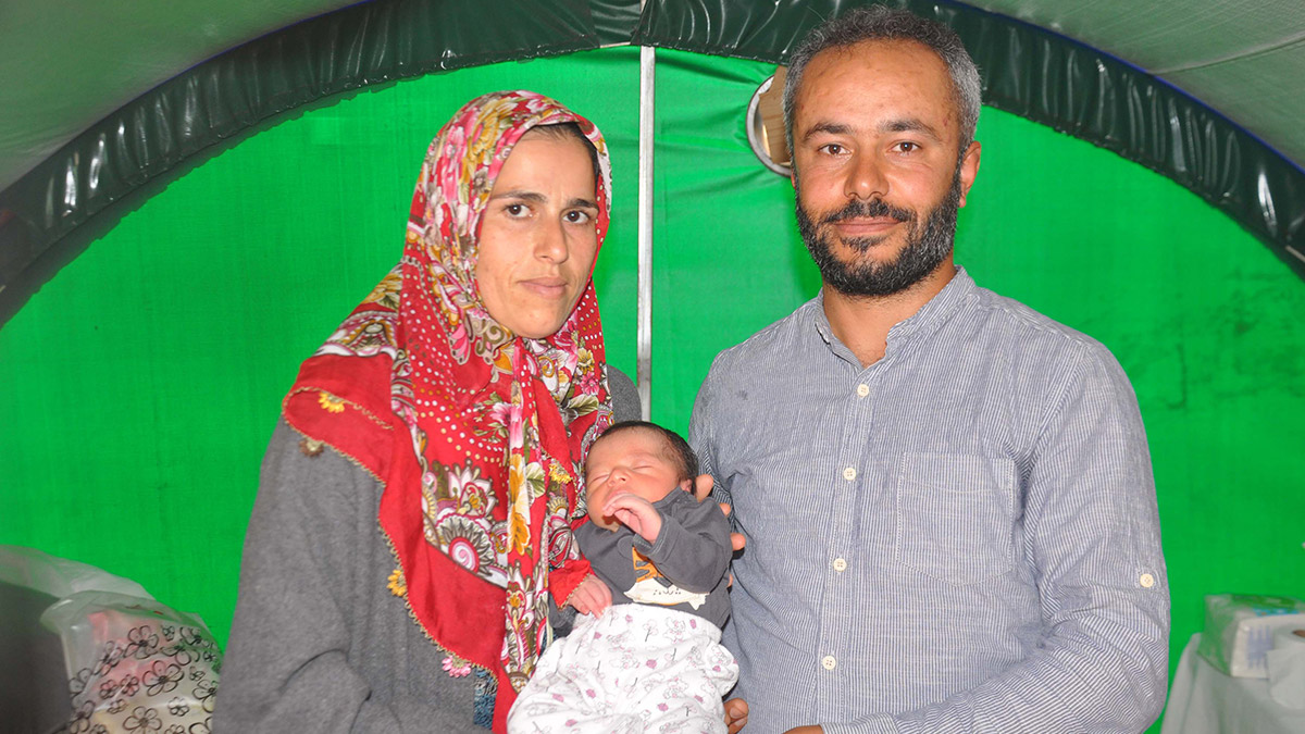 Hatay’ın Kumlu ilçesinde depremzede aileler için kurulu çadır kentte yaşayan İslamoğlu ailesi, yeni doğan bebeklerine çadır kentteki öğretmen Sultan Özateş’in ismini verdi.