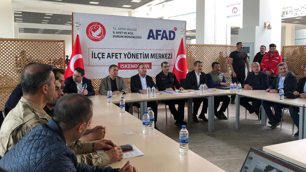Adalet Bakanı Bekir Bozdağ, İskenderun Teknik Üniversitesi kampüsündeki AFAD Kriz Merkezi’ni ziyaret etti. Bakan Bozdağ’ı merkez önünde Enerji ve Tabii Kaynaklar Bakanı Fatih Dönmez ve Hatay Milletvekili Abdulkadir Özel ile yetkililer karşıladı. Bakan Dönmez, deprem sonrası yapılacak işlerin kriz merkezinden koordine edildiğini belirterek, “Merkezimizde 2 koordinasyon valimiz, kaymakamlarımız var. Tüm birimlerle birlikte İskenderun ve çevresindeki 6 ilçeyi de buradan koordine ediyoruz” dedi.
