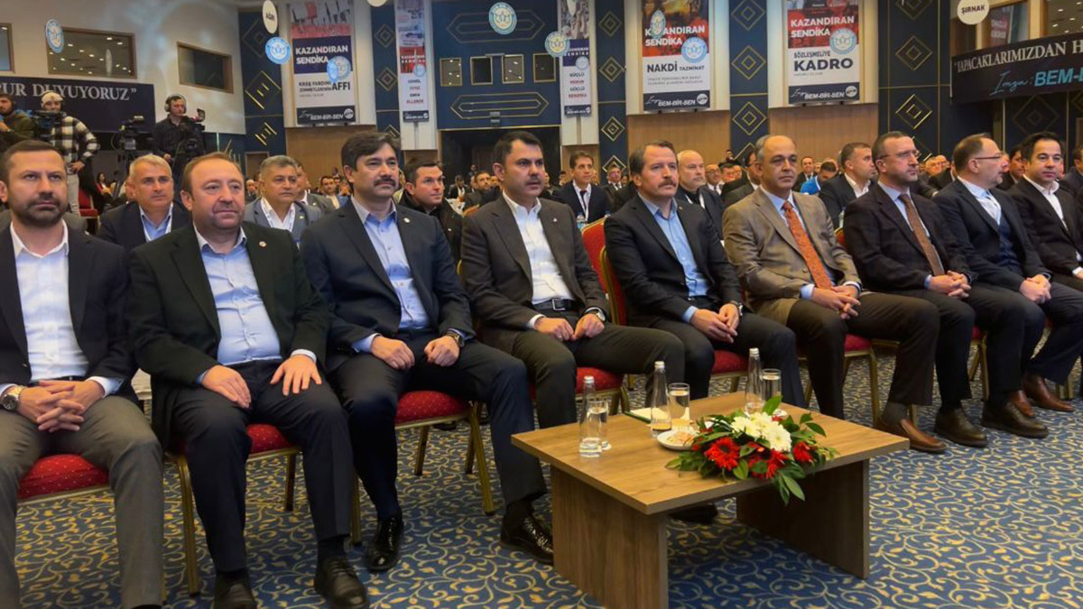 Çevre, Şehircilik ve İklim Değişikliği Bakanı Murat Kurum, Ankara’da ‘Belediye Özel İdare Çalışanları Birliği Sendikası (Bem-Bir-Sen) 7’nci Olağan Genel Kurulu Toplantısı’na katıldı. Toplantıda Bem-Bir-Sen Genel Başkanı Levent Uslu, Memur-Sen Genel Başkanı Ali Yalçın da yer aldı. Bakan Kurum, dünyanın bugün iklim değişikliği, savaş, göç, kuraklık gibi pek çok problemle karşı karşıya olduğunu vurgulayarak, “İnsanımız, bu problemlerden kaynaklı afetler nedeniyle acılar çekmektedir.