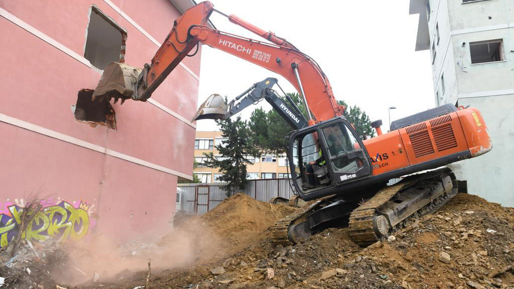 Beşiktaş’ta kentsel dönüşüm çalışmaları Akat Mahallesi’nde 2 binanın yıkımıyla başladı.