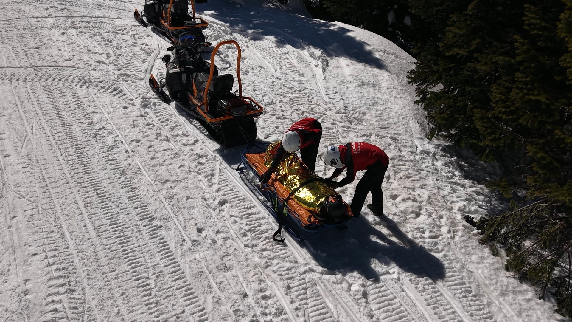 Sis, tipi ve sıfırın altında 10 dereceyi aşan olumsuz hava koşulları ile 2 bin rakıma ulaşan engebeli ve sarp arazide kar motoru ve Utv gibi arazi araçlarını kullanan Eda Astsubay, Oteller Bölgesi’ndeki Jak noktasına gelen ihbar üzerine harekete geçiyor. Kimi zaman pistten çıkan, kimi zaman düşerek yaralanan bir kayakçının, kimi zaman da ormanda yönünü kaybedip mahsur kalan bir tatilcinin imdadına yetişiyor. Timiyle birlikte kısa sürede belirlenen koordinata ulaşan Astsubay Üstçavuş Eda Bayram Tanç, olay yerinde ilk kontrollerini ve müdahalesini yaptığı tatilciyi, sağ salim sevdiklerine ulaştırıyor.