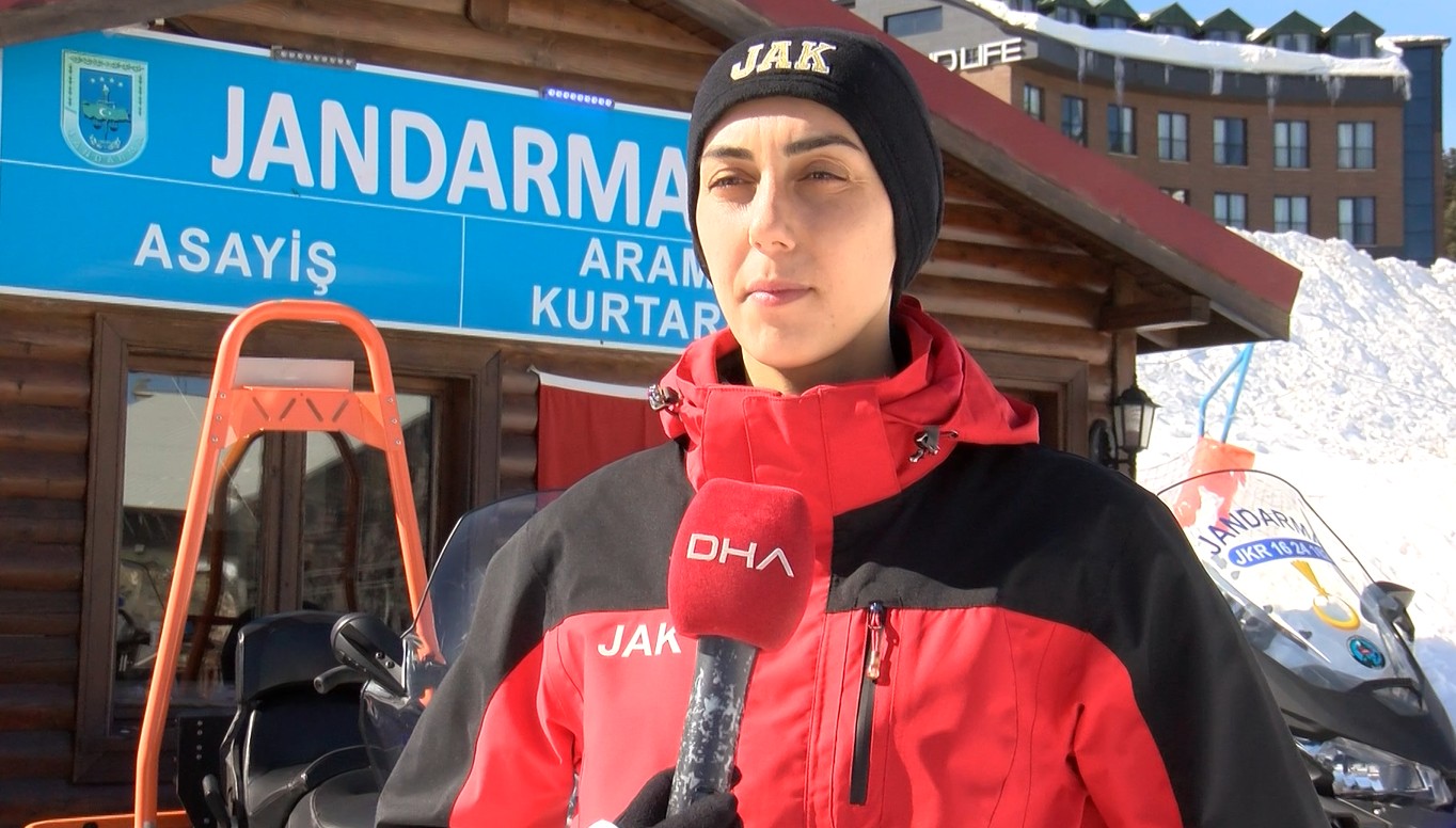 Türkiye’nin önemli kış turizm merkezlerinden Uludağ'da asayiş ve huzuru sağlamak için aktif görev alan İl Jandarma Komutanlığı’na bağlı Jandarma Arama Kurtarma (Jak) timlerine bu yıl ilk kez bir kadın personel dahil oldu.