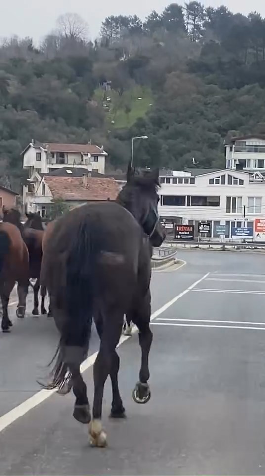 Olay, saat 12.00 sıralarında Riva yolu üzerinde meydana geldi. Yolda koşarak ilerleyen sahipsiz atları fark eden sürücüler, hayvanlara çarpmamak için hızlarını düşürdü. Trafikte kısa süreli aksama yaşanırken, atların Riva girişinde durduğu görüldü. Bir süre bölgede bekleyen atlar, daha sonra ters istikamete yönelerek gözden kayboldu.