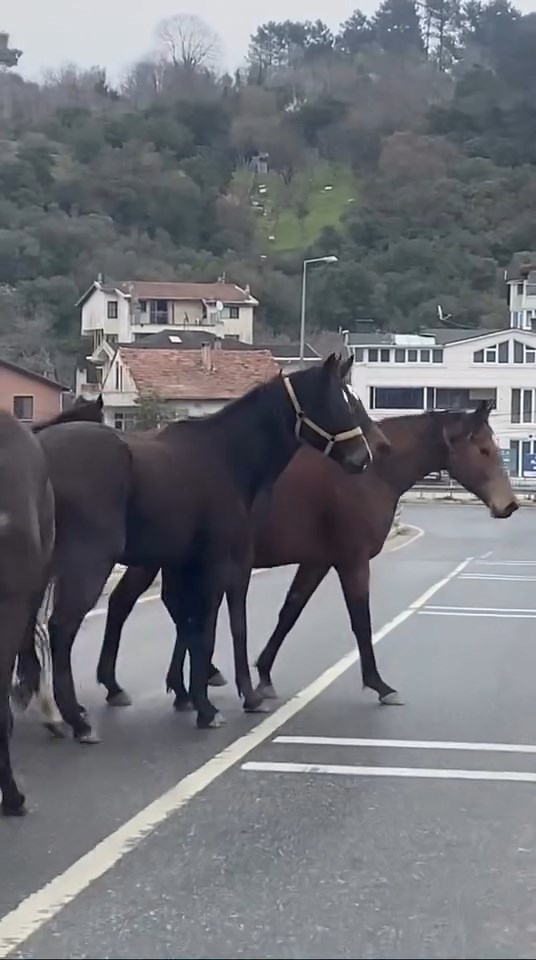 Beykoz, Riva Yolu’nda başıboş dolaşan 6 at, trafiği tehlikeye soktu.