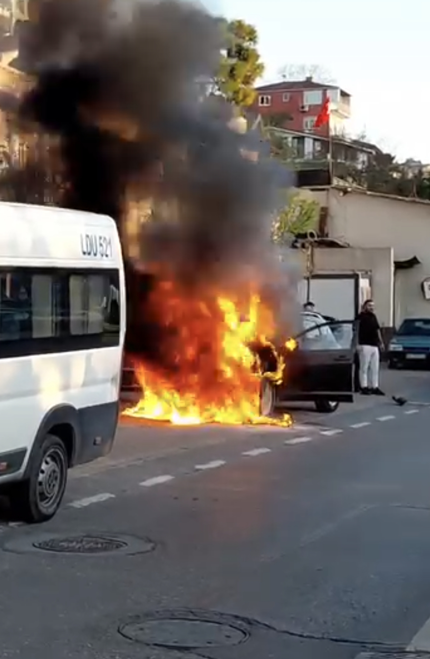 Yangın, dün saat 18.00 sıralarında Çubuklu Mahallesi Kireç Ocağı Caddesi’nde meydana geldi. Caddede ilerleyen seyir halindeki otomobilin motor kısmından dumanlar yükselmeye başladı. Bunun üzerine sürücü aracını sağa çekip otomobilden indi. Alevler kısa sürede büyüyerek aracı sardı.
