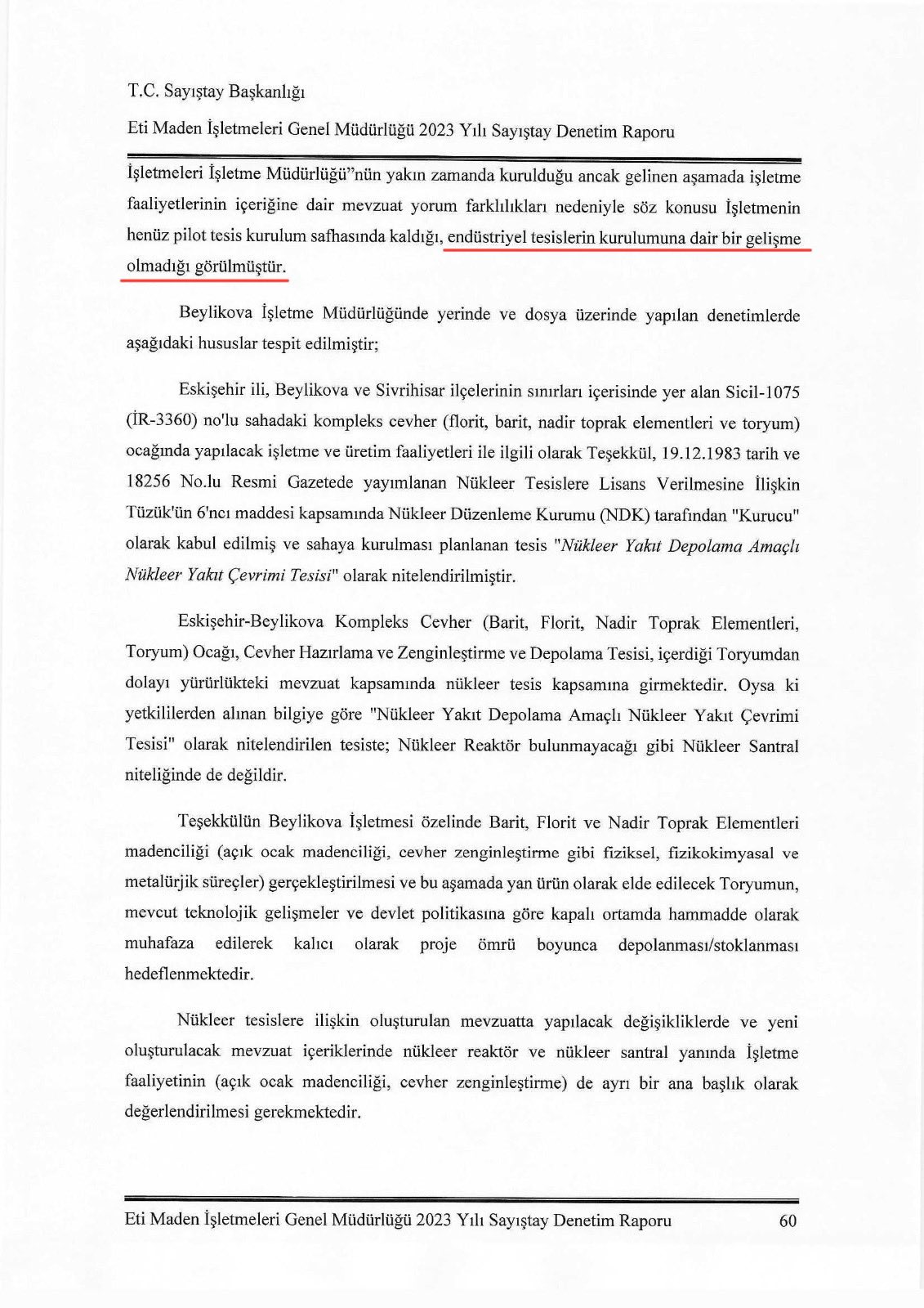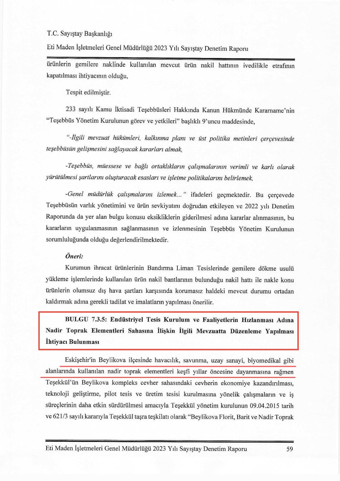 ‘Eti Maden İşletmeleri Sayıştay Denetim Raporuna göre