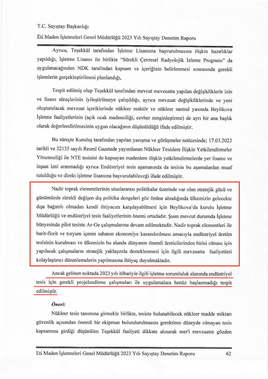 AKP’nin, Eskişehir Beylikova’daki Nadir Toprak Elementlerinin dışa bağımlı olunmadan üretilmesini sağlayacak endüstriyel tesisleri kurma sürecini savsakladığını tespit ettik.