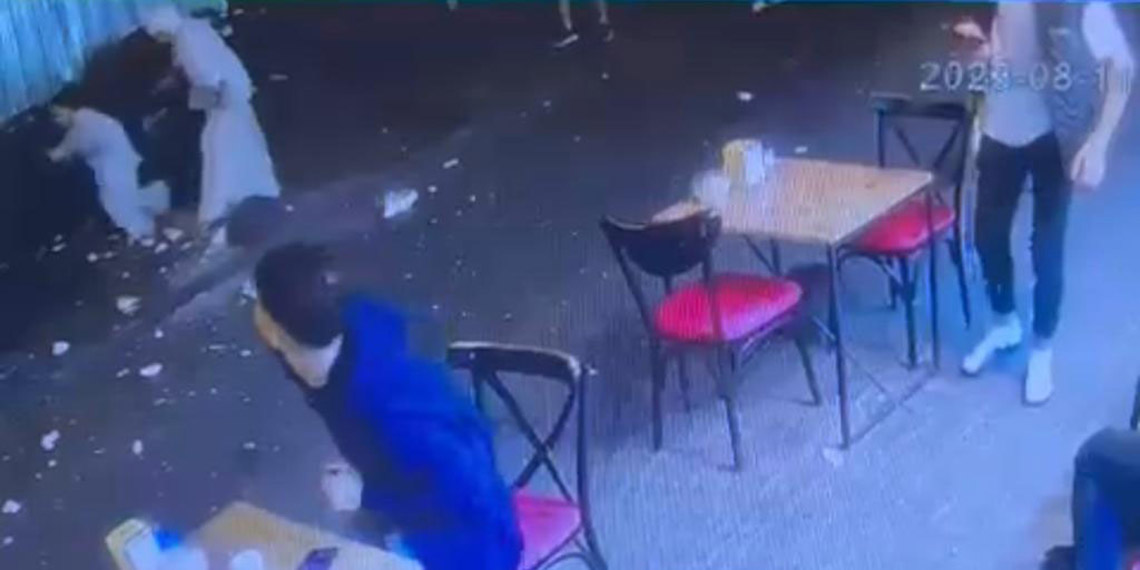 Beyoğlu’nda binadan kopan betonlar yolda yürüyen turist ailenin hemen yanına düştü. Şans eseri aileden yaralanan olmazken, yerden seken taş parçası bir esnafa isabet etti. O anlar bir iş yerinin güvenlik kamerasına yansıdı.