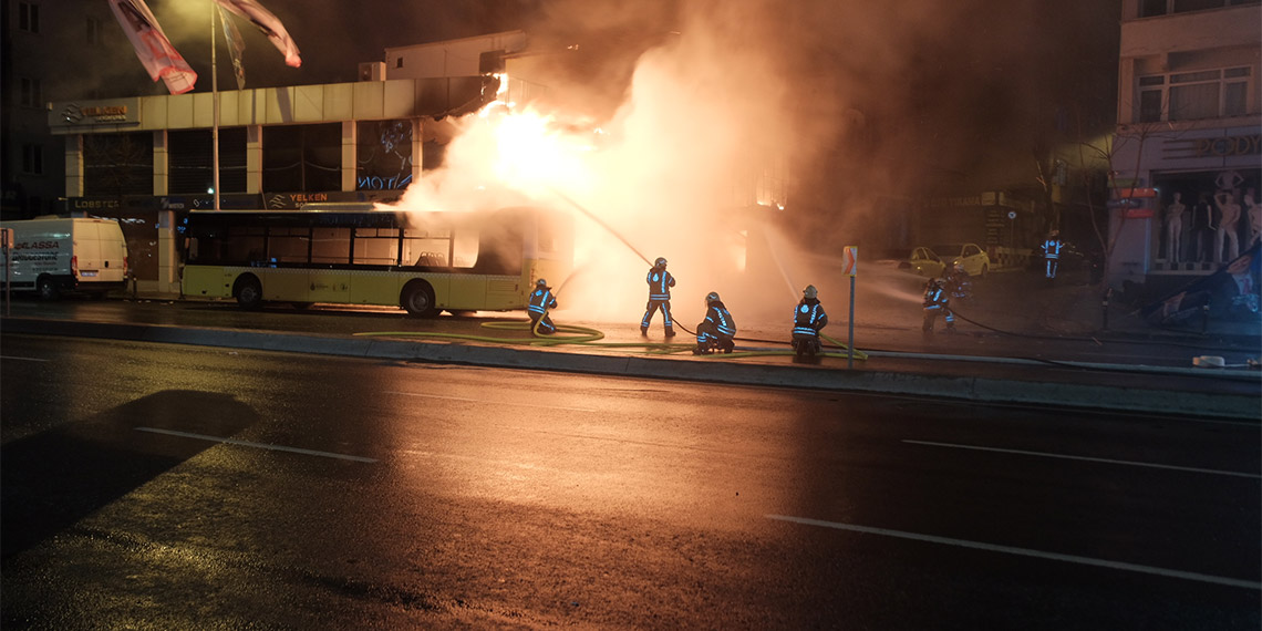 Çevredeki vatandaşların ihbarı üzerine olay yerine itfaiye, polis ve sağlık ekibi sevk edildi. Yangına farklı ilçelerden gelen çok sayıda itfaiye ekibi müdahale etti. Yangın uzun süren çalışmaların ardından güçlükle söndürüldü. Yangın sırasında iş yerleri kullanılamaz hale gelirken, otobüste hasar oluştu. Polis olayla ilgili inceleme başlattı.