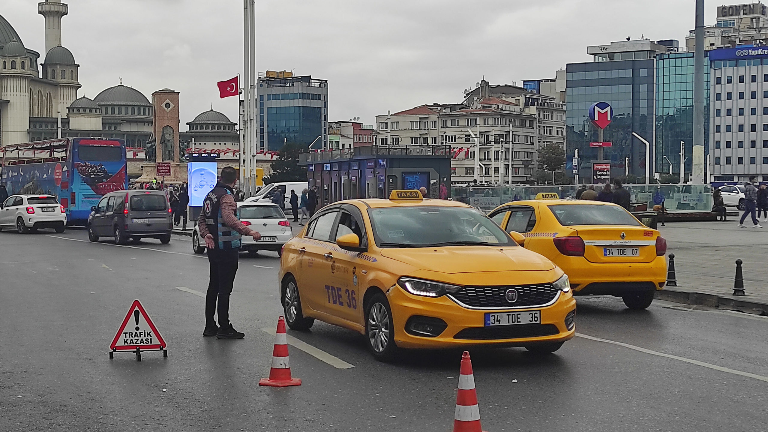 Trafik Denetleme Şube Müdürlüğü ekipleri, Taksim Meydanı’nda taksi ve taksicilere yönelik denetim gerçekleştirdi. Polis, durdurulan taksi şoförlerinin ehliyet, ruhsat ve belediye izin belgelerini tek tek inceledi. Emniyet kemeri kontrolü de yapan ekipler, kemer takmayan şoförlere cezai işlem uyguladı.