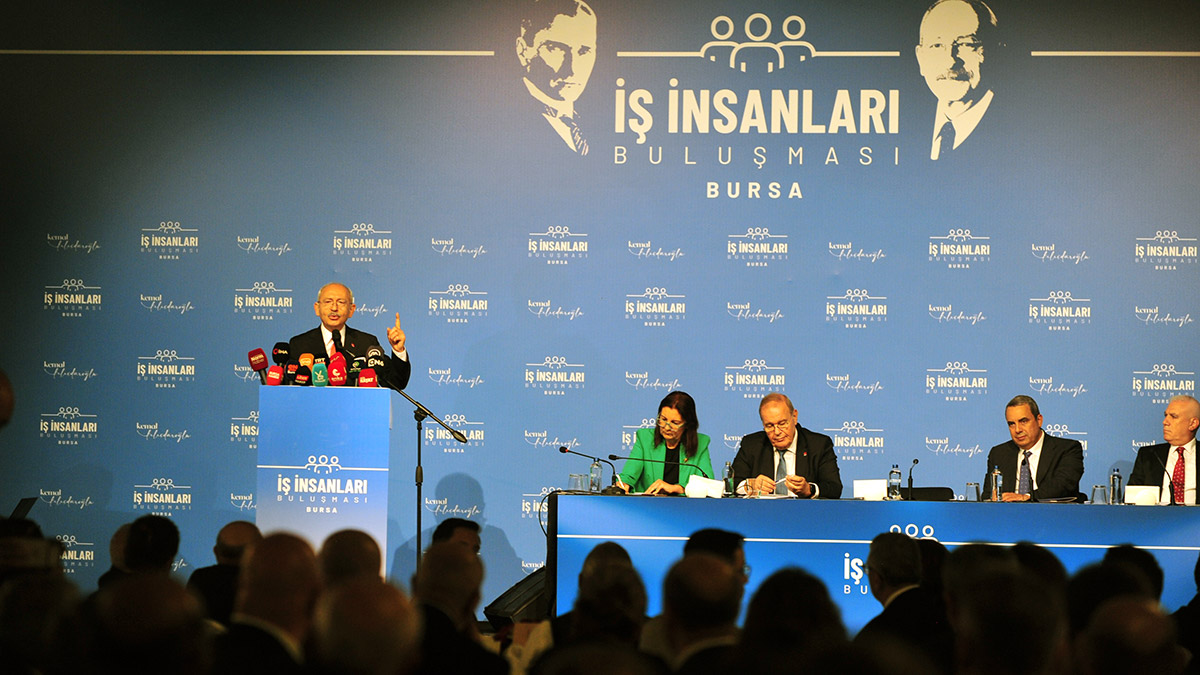 CHP Genel Başkanı Kemal Kılıçdaroğlu, partisinin Bursa İl Başkanlığı’nca düzenlenen İş İnsanlarıyla Buluşma Toplantısı’na katıldı. Toplantıya Kemal Kılıçdaroğlu’nun yanı sıra; CHP Genel Başkan Yardımcıları Faik Öztrak ve Lale Karabıyık, Millet İttifakı’nın temsilcileri, CHP milletvekilleri ve iş insanları katıldı. Toplantının başında açılış konuşması yapan Kılıçdaroğlu, partisinin ekonomi politikalarını anlattı.