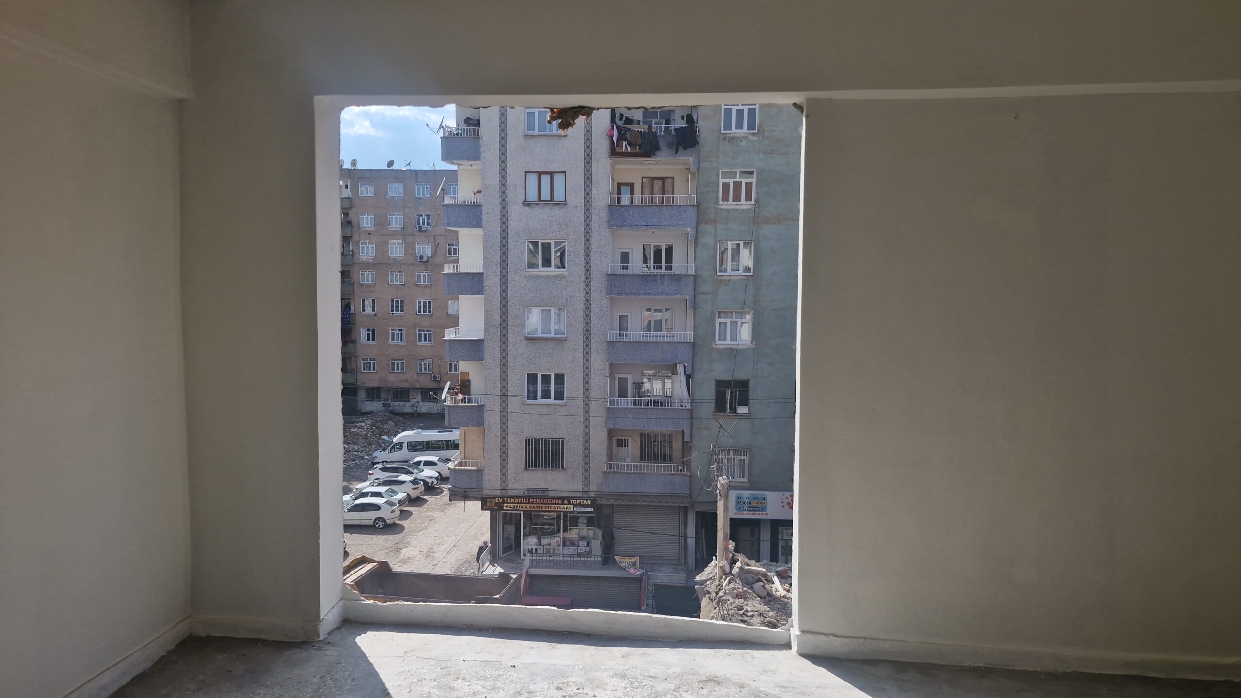 Diyarbakır’da ağır hasarlı 5 katlı binanın yıkımı sırasında, bitişikteki 7 katlı apartmanın ilk 5 katındaki bazı odaların duvarının yapılmadığı ortaya çıktı.