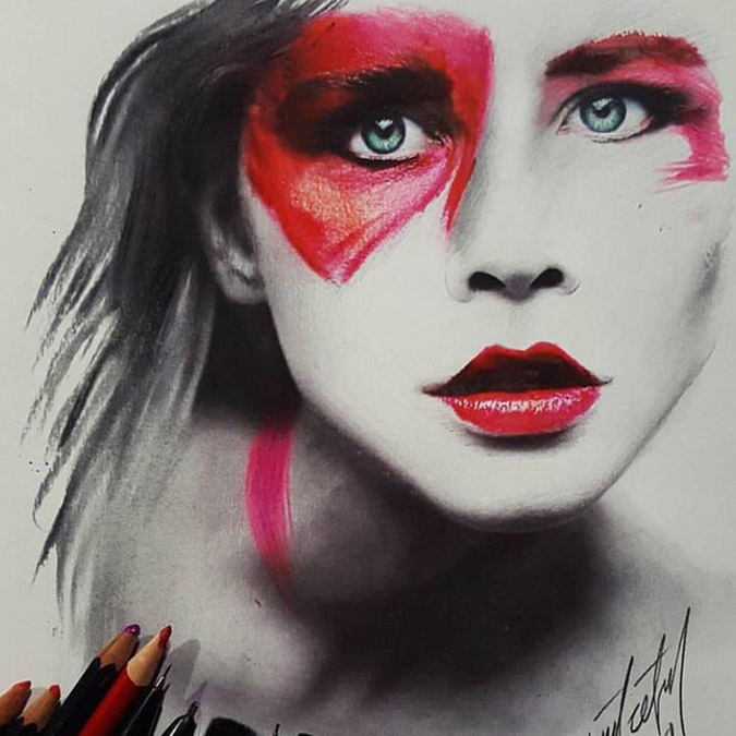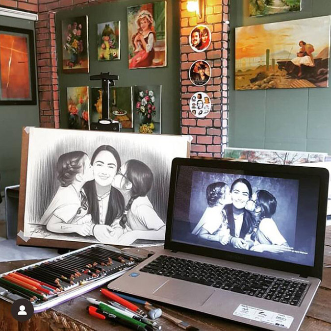 Dijital platformda çalışmalarını tanıtmaya başladığını söylüyor. Genelde Portre çalışmalarını tercih eden genç ressam gördüğü resimleri çizmiyor adeta kopyalıyor. Çok yetenekli başarılı çizimleri mevcut.
