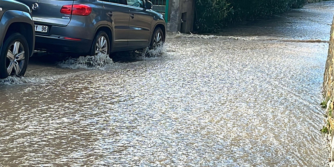 Bodrum’da dolu ve sağanak nedeniyle cadde ve sokaklarda suyla doldu, sürücüler zor anlar yaşadı.