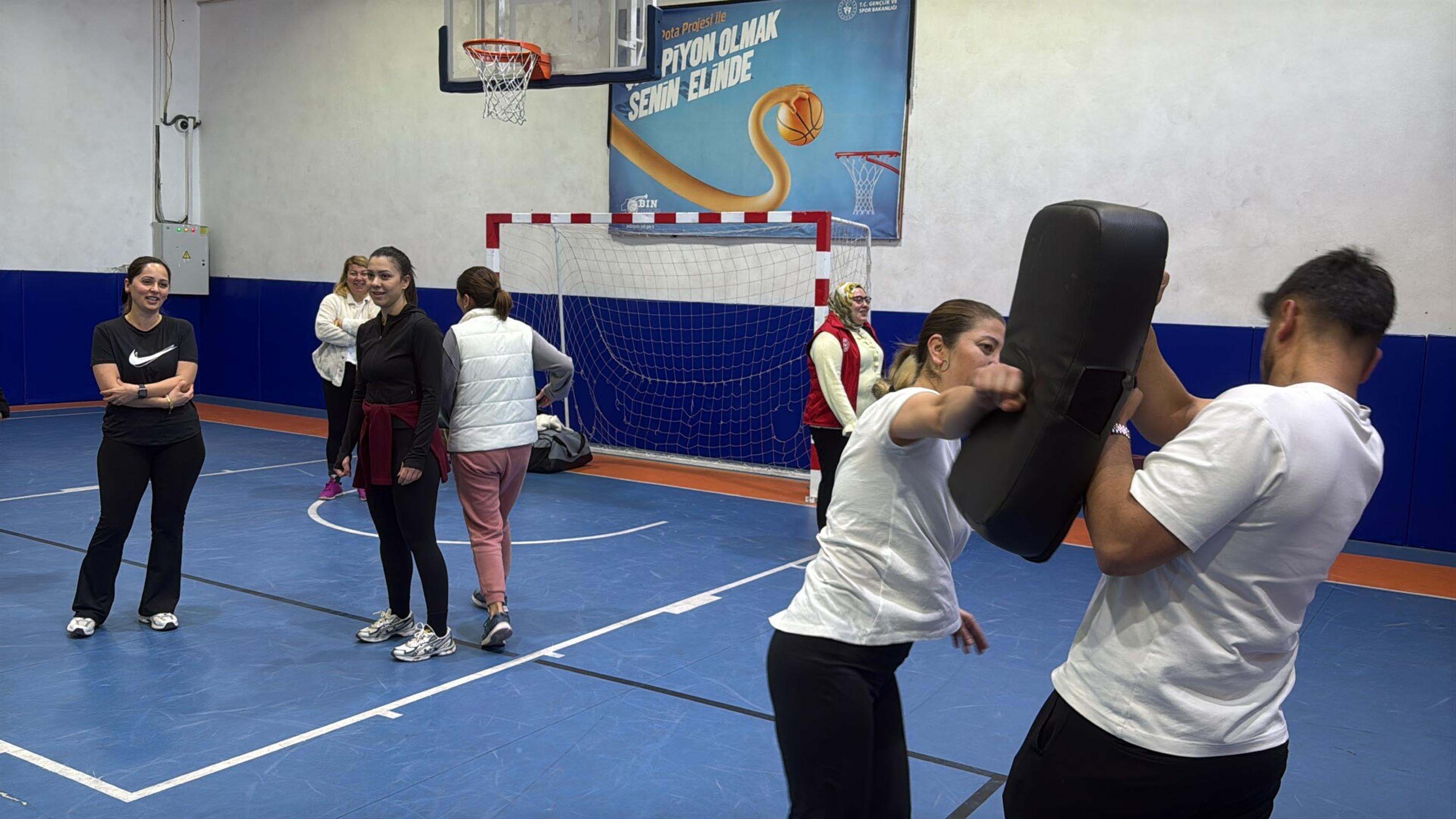 Teorik bilgilendirmenin ardından uygulamalı aşamaya geçilerek; doğru duruş, teknik hamleler ve etkisiz hale getirme yöntemleri gösterildi.