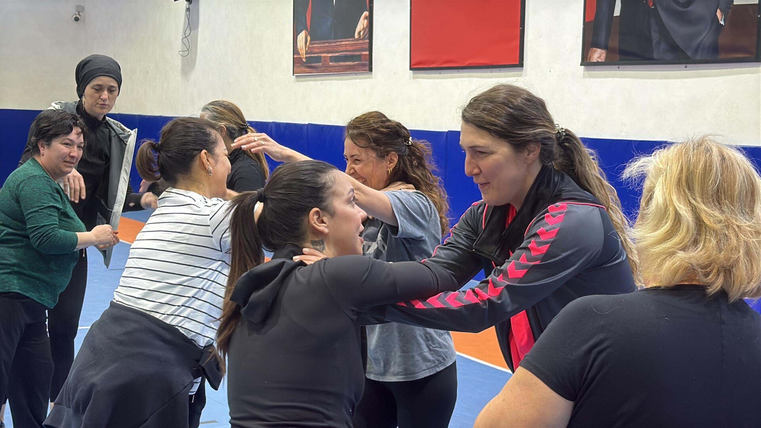 Muğla'nın Bodrum ilçesinde 8 Mart Dünya Kadınlar Günü etkinlikleri kapsamında, pilates için Gençlik Merkezi'ne gelen kadınlara yönelik 'savunma sanatları ile kendini keşfet' eğitimi düzenlendi.