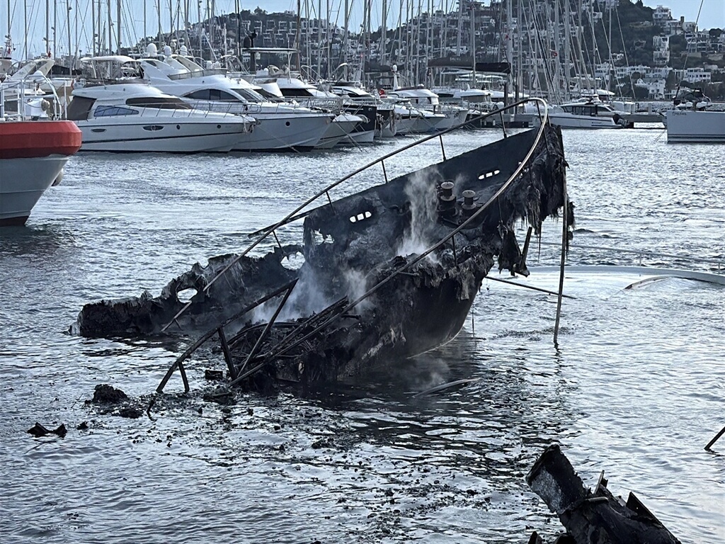 Bodrum’daki yat yangını sonrası temizlik ve enkaz kaldırma çalışması başlatıldı