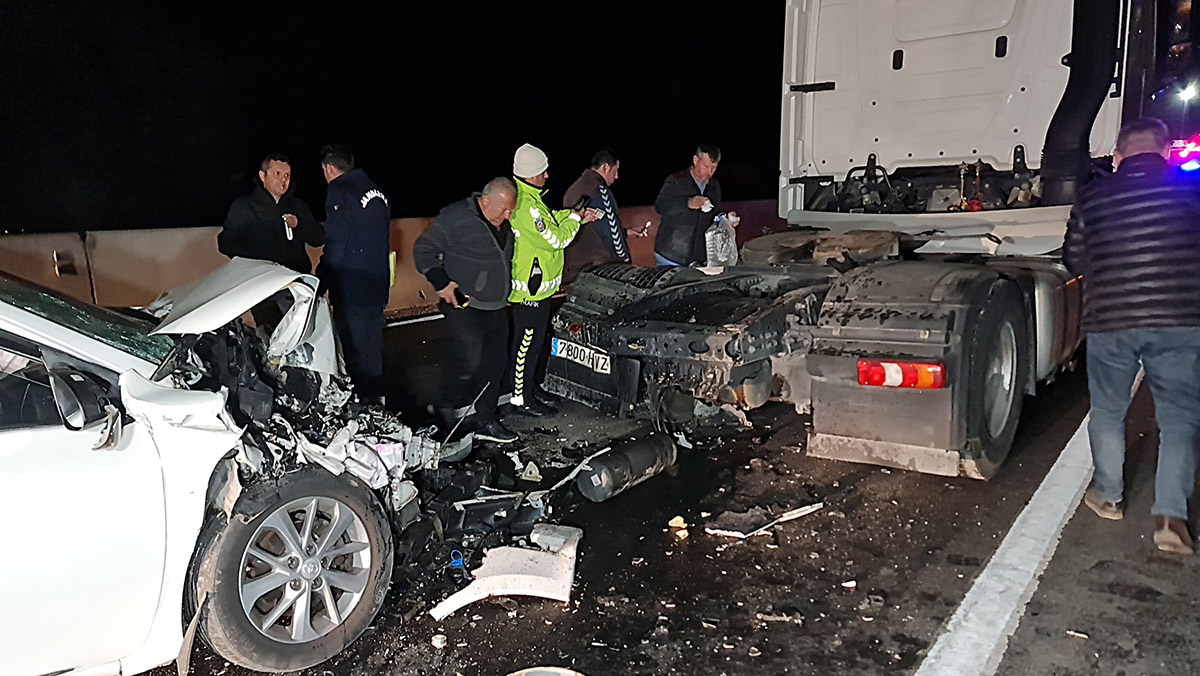 Kaza, gece D-100 yolunun Bolu Dağı Bakacak mevkisinde meydana geldi. Ankara yönündeki Hasan Ali Bulut’un kullandığı 81 FC 575 plakalı otomobil, aynı yöndeki Cemal Günenç’in kullandığı 7800 HVZ plakalı TIR’ın dorsesine çarptı.