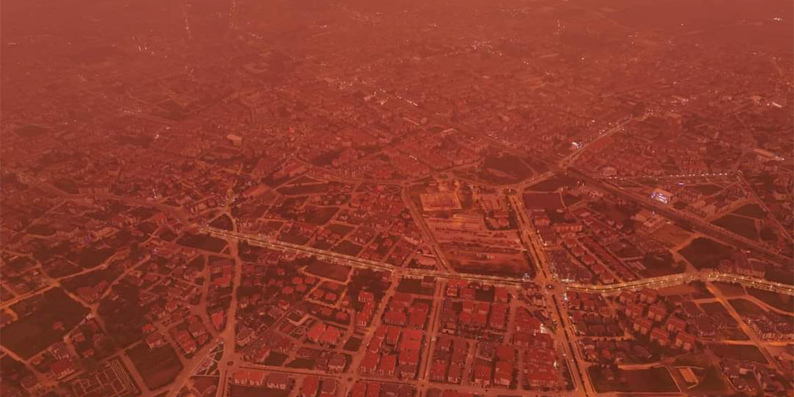 Bolu’da son günlerde etkili olan Afrika üzerinden gelen toz taşınımı devam ediyor. Meteoroloji Genel Müdürlüğü’nün önceki günlerde sarı kodlu uyarı verdiği kentte, toz bulutunun etkisi tekrar görüldü. Toz taşınımı nedeniyle akşam saatlerinde kentte gökyüzü kırmızı renge büründü. Toz taşınımıyla birlikte yağmur başlamasıyla araçların üzeri ince çamurumsu bir tabakayla kaplandı.
