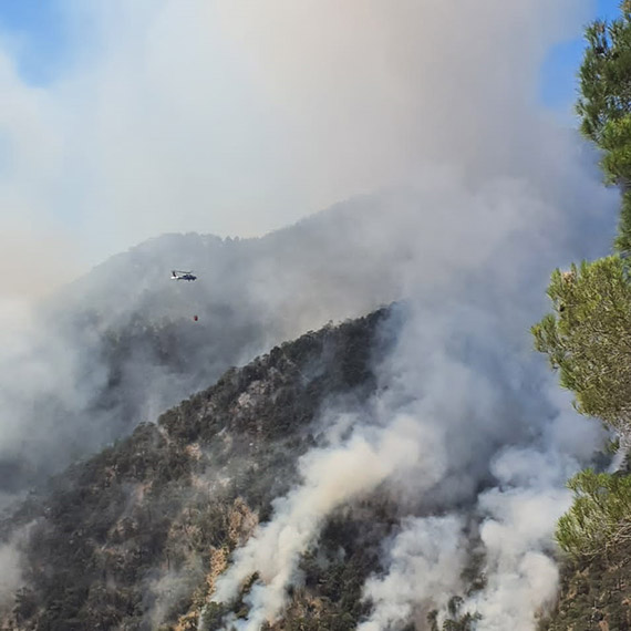 Bolu’nun Göynük ilçesinde yıldırım düşmesi sonucu çıkan orman yangınına müdahalede kullanılmak üzere bölgeye takviye olarak 5 yangın söndürme helikopteri daha gönderildi. Toplam 7 helikopter, yangına havadan müdahale ediyor. 50 hektar alanın zarar gördüğü yangına karadan müdahale edilebilmesi için de çalışma yürütülüyor. Dağ yamacındaki yangın için ekipler, iş makineleri ile yol açıp, bölgeye ulaşmaya çalışıyor.