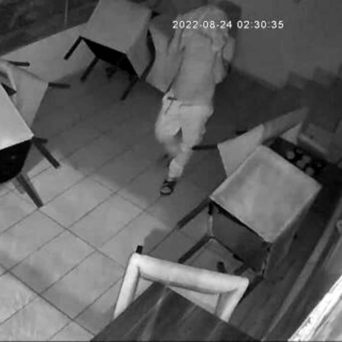 Kameranın yönünü değiştiren şüpheli daha sonra içeride bulduğu dizüstü bilgisayarı çalarak gitti. Polis, güvenlik kamerası görüntülerini inceleyerek şüphelinin tespit edilerek yakalanması için çalışma başlattı.