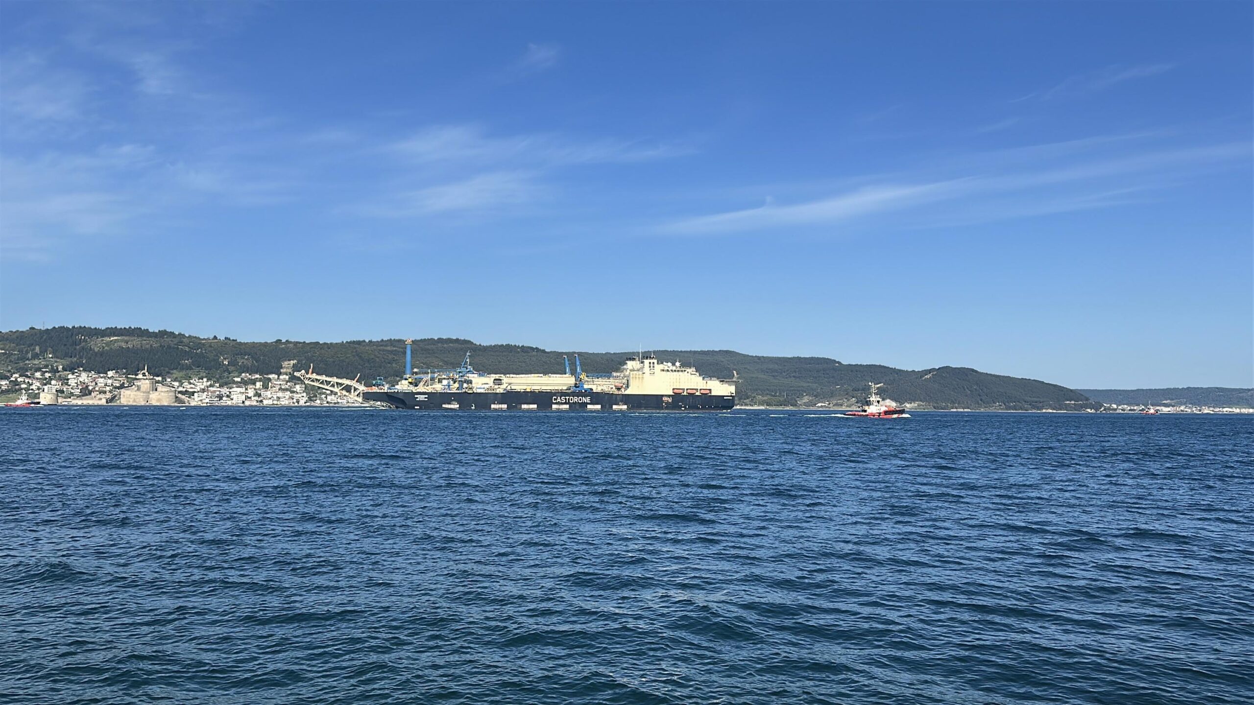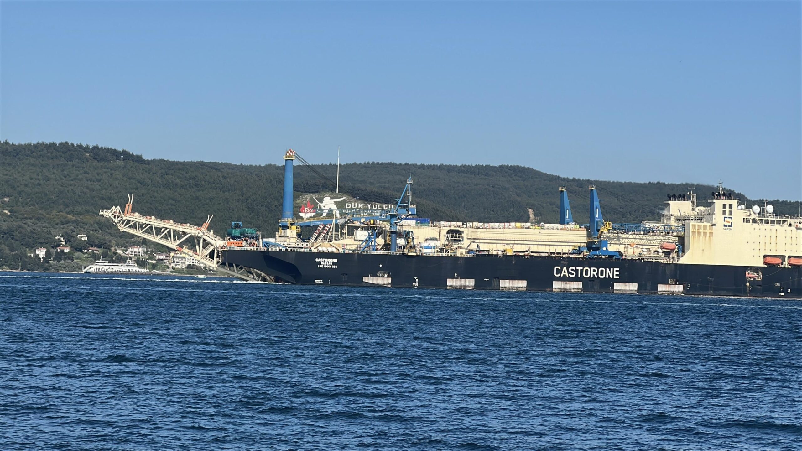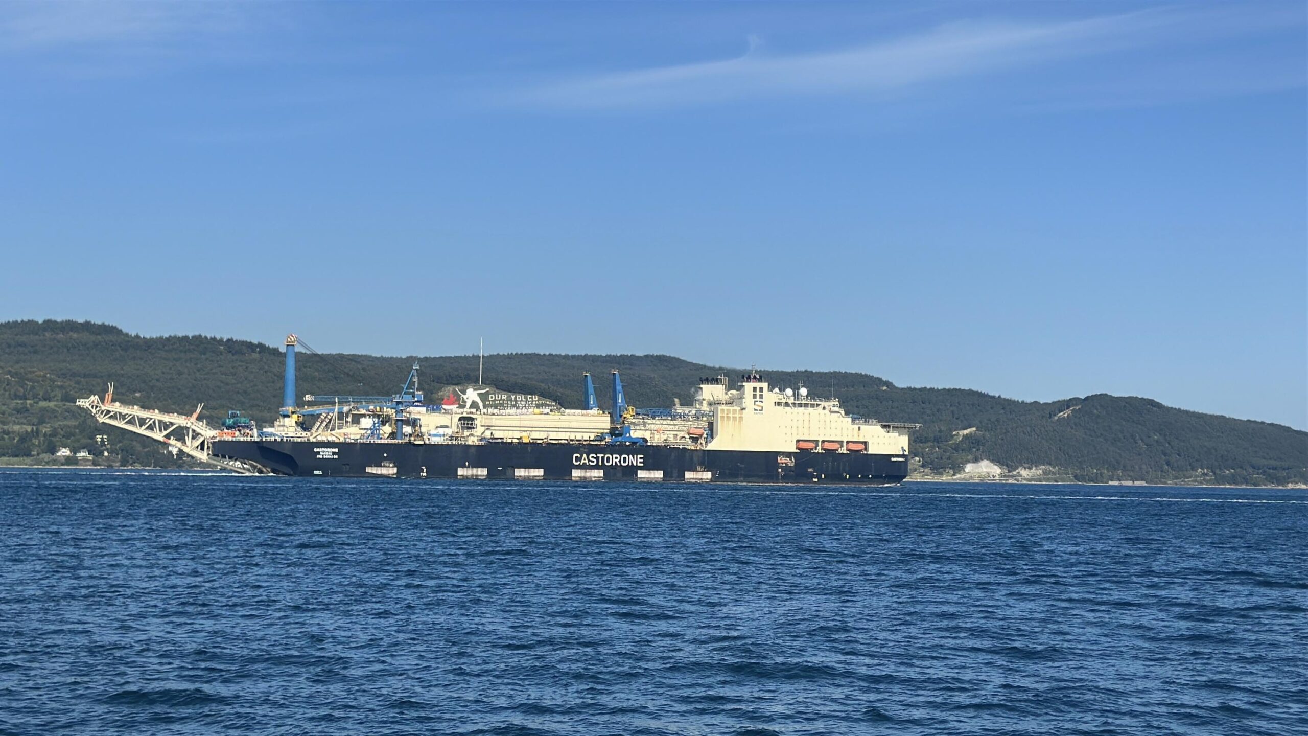 Çanakkale Boğazı'ndan geçen Bahama Adaları bayraklı 'Castorone' isimli boru döşeme gemisi, Marmara Denizi'ne doğru yol aldı.