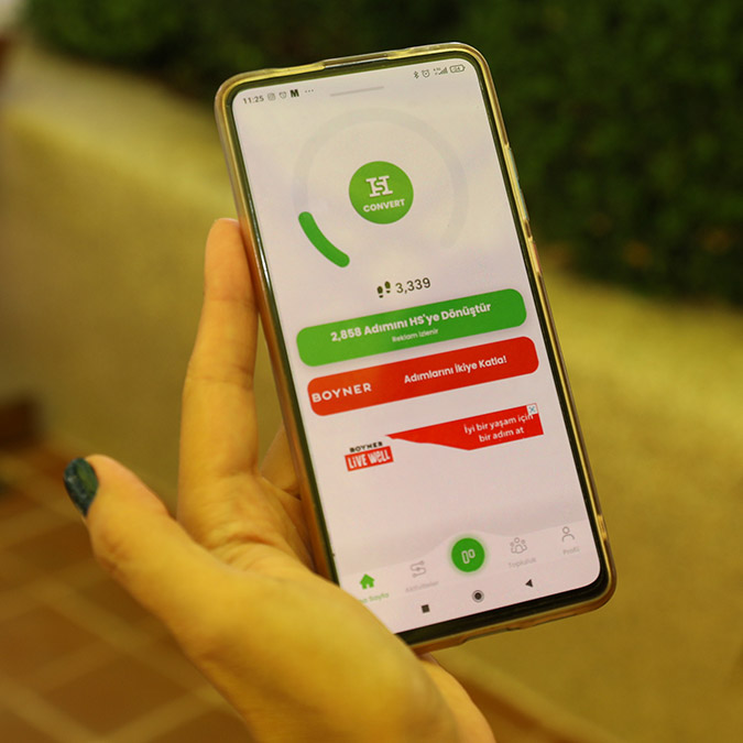Help Steps uygulamasını, Google Play’den ve App Store’dan ücretsiz olarak indiren kullanıcılar cep telefonları cebindeyken tüm gün her zamanki gibi yürüyor, bisiklete biniyor veya koşuyor. Bu adımlar aynı zamanda bir adımsayar olan Help Steps uygulamasında birikiyor. Ardından akşam saat 24.00 olmadan kullanıcılar uygulamaya girip ‘Adımlarımı HS’ye çevir’ butonuna basıyor ve kısa bir reklam izliyor. Adımları HS puanına dönüşen kullanıcılar bu puanları isterse biriktiriyor ya da ihtiyaç sahibi bireysel yararlanıcılara, sivil toplum kuruluşlarına veya spor kulüplerine bu uygulama üzerinden bağışlıyor.