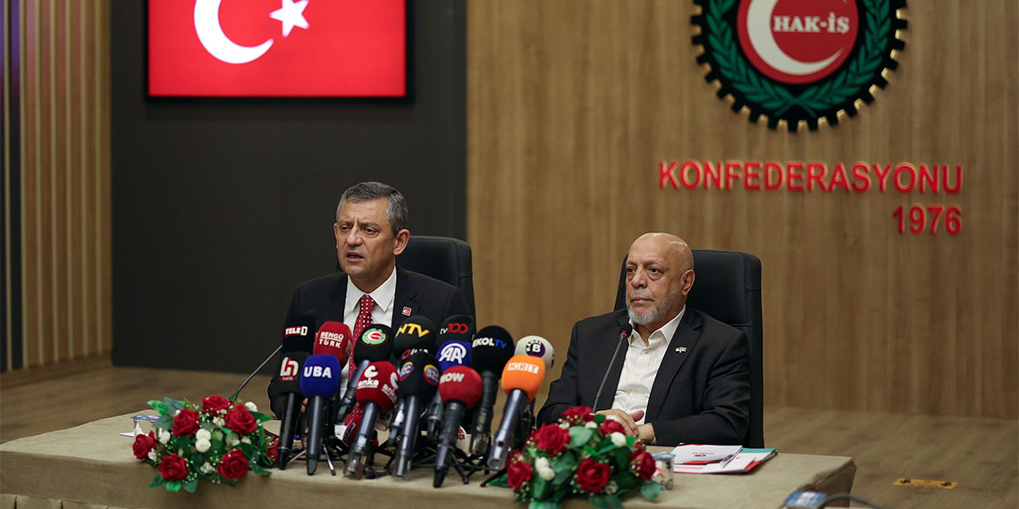 Cumhuriyet Halk Partisi Genel Başkanı Özgür Özel, hükümetin 2025 yılı için asgari ücreti 22 bin 104 lira açıklaması sonrası HAK-İŞ’i ziyaret etti. Burada konuşan CHP Lideri Özel, “Çok teşekkür ederim Sayın Genel Başkanım. Sizin şahsınızda HAK-İŞ’te örgütlü olan tüm sendikaların Sayın Genel Başkanlarını, yönetim kurulu üyelerinizi sizin şahsınızda, örgütlü bütün emekçi kardeşlerimizi saygıyla selamlıyoruz. Sayın Genel Başkan, Genel Başkan seçilmemizden sonraki bir süreçte kıymetli heyeti ile birlikte bizi ziyarete gelmişti. Ben de kendisine bir iade-i ziyaret yapmak istediğimi ifade etmiştim. Birkaç kez de buna niyetlendik ama nasip bugüneymiş. Tabii bugünün gündemi emekçiler açısından yakıcı bir gündem. O konuyu Sayın Başkanla ve yönetim kurulu üyeleri ile görüştük, karşılıklı görüş alışverişinde bulunduk. Öncelikle şunu ifade etmek isterim ki daha önce de birkaç kez bunu söyledim, tekrarda da çok fayda görüyorum. Bugün Türkiye’deki sözümüzde değer veren tüm işçilere şunu söylemek isterim. Sendikasız olunduğu takdirde, bir başınıza, savunmasız ve gelecekten umutsuzsunuz. Sendikanın adı ne olursa olsun, konfederasyonun adı ne olursa olsun örgütlenme örgütsüz olmaktan çok çok daha iyidir. Tüm işçilere, bugünkü durumundan memnun olmayan tüm emekçilere kendilerine bir sendikalı olma noktasında uzatılan el ya da yanlarına gelen bu konuda örgütlenmeyi teklif eden emekçi kardeşlerine söz vermelerini ve mutlaka sendikalı olmalarını öneriyorum, ifade ediyorum. Bunda sayısız fayda olduğunu bir kez daha ifade ederek sözlerime başlamak isterim” dedi. Özel şöyle devam etti: