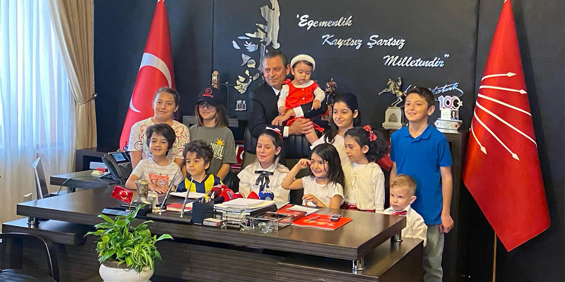 Özgür Özel, ’23 Nisan Ulusal Egemenlik ve Çocuk Bayramı’ etkinlikleri kapsamında TBMM’deki makamında çocuklarla bir araya geldi. Çocuklarla sohbet eden Özel, bayramlarını kutladı. Özel, 23 Nisan geleneği olarak makam koltuğunu Bilkent Müzik ve Sahne Sanatları Fakültesi’ne bağlı Müzik Hazırlık Ortaokulu 5’inci sınıf öğrencisi Dora Mimaroğlu’na devretti.