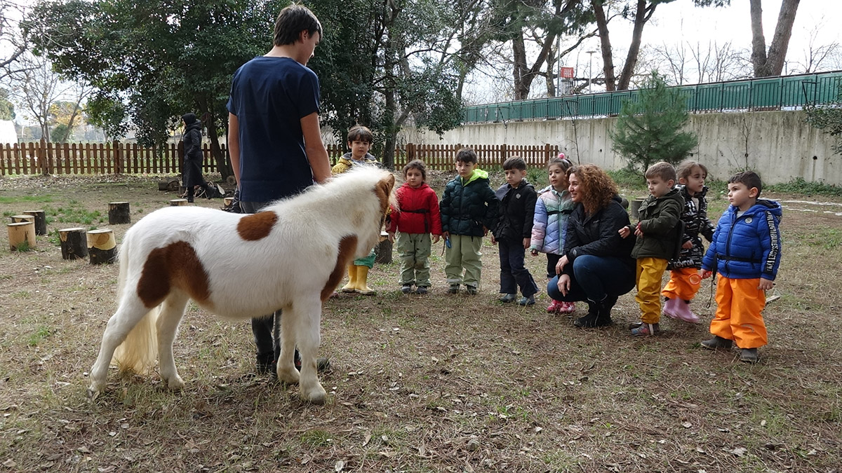 Salyangozları ellerine alıp büyüteçlerle inceleyen, resim dersinde boya yerine yaprak, bitki ve meyveleri malzeme olarak kullanan çocuklar, doğa ve hayvanlarla iç içe bir şekilde eğitim hayatlarına adım atıyor.