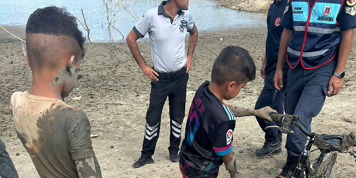 Olay, Yeniceköy Mahallesi’ndeki gölette meydana geldi. Bisikletleri ile Yeniceköy Göleti çevresinde gezmeye başlayan 2 çocuktan biri balçığa saplandı. Yardımına giden arkadaşı da balçığa saplanınca, 2 çocuk gölet kenarında mahsur kaldı. Çevredekilerin ihbarıyla olay yerine jandarma ve itfaiye ekipleri sevk edildi. Çocuklar, bisikletleri ile itfaiye ekipleri tarafından kurtarılırken, o anlar çevredekiler tarafından cep telefonu ile görüntülendi.