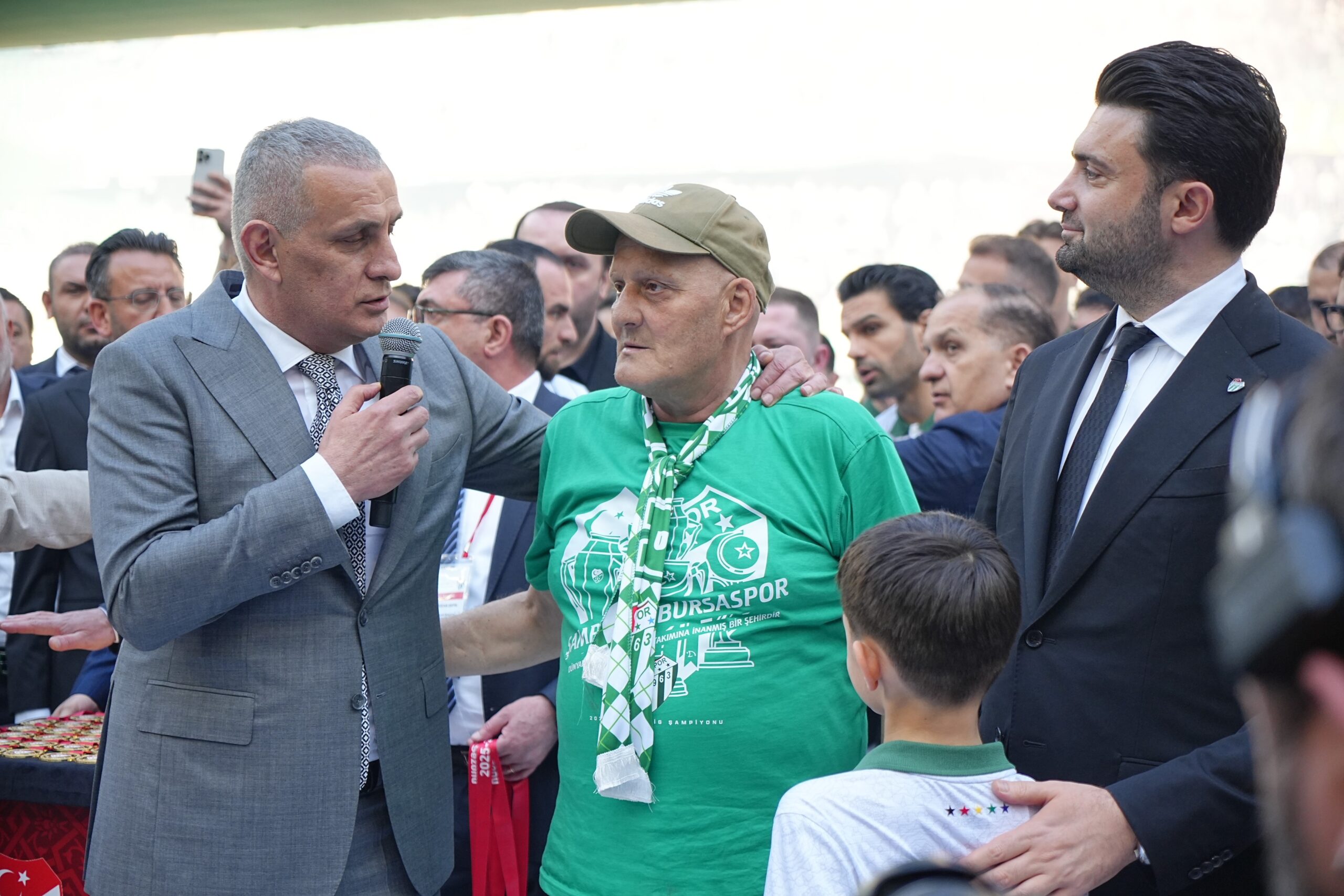 2’nci Lig Kırmızı Grup’ta şampiyon olarak 1’inci Lig’e yükselen ve son maçında deplasmanda Aliağa Fk’yı 5-0 mağlup eden Bursaspor, şampiyonluk kupasını TFF Başkanı İbrahim Hacıosmanoğlu'nun elinden aldı.