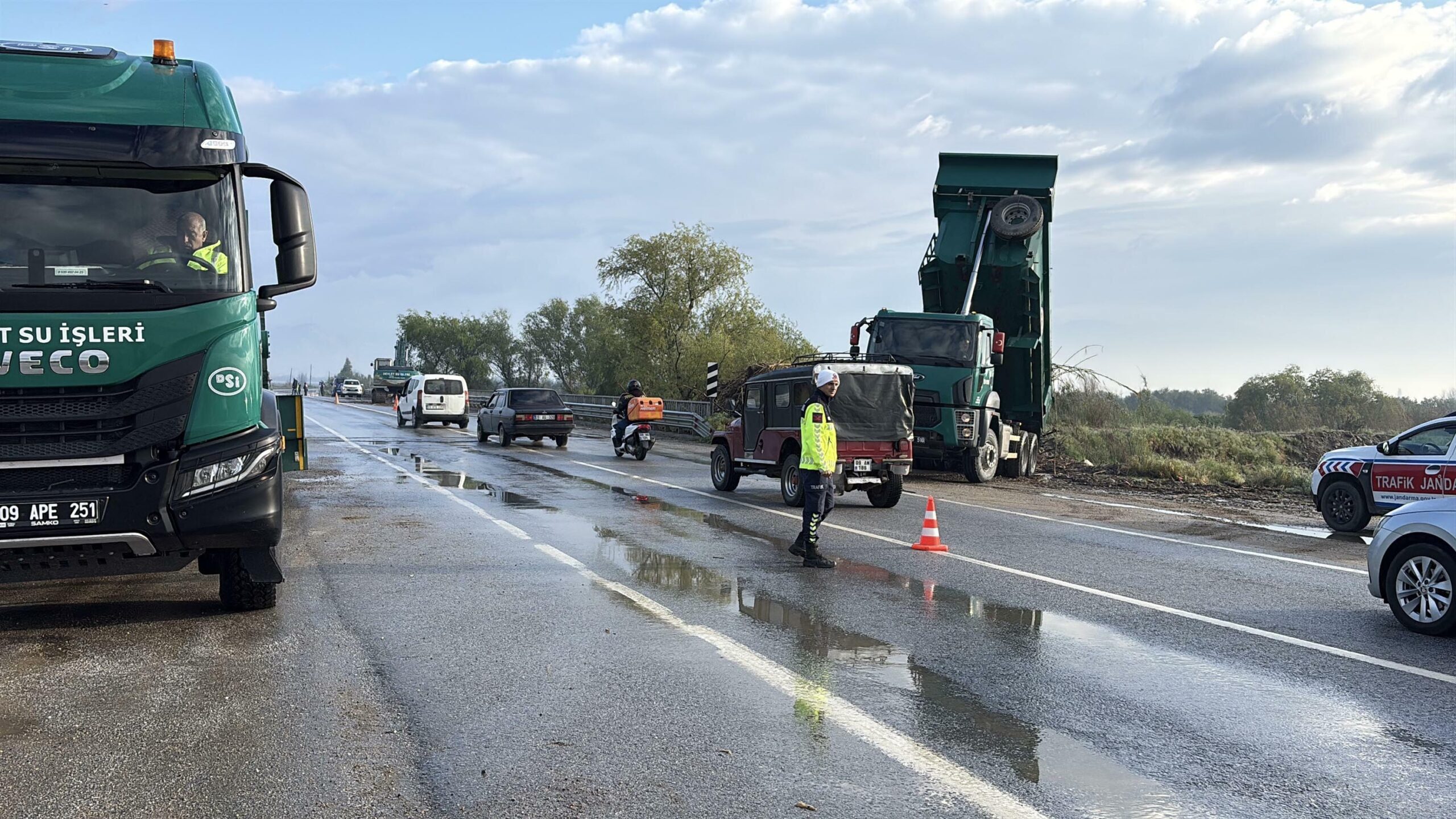 Yol trafiğe kapatıldı. Bölgede güvenlik önlemi alan jandarma ekipleri, ulaşımı kontrollü şekilde tek şeritten sağlamaya başladı.