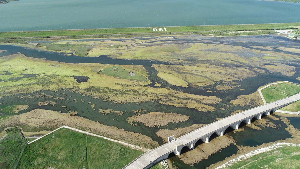 Büyükçekmece Gölü ile Marmara Denizi’nin birleştiği noktada oluşan yosun tabakası artıyor.