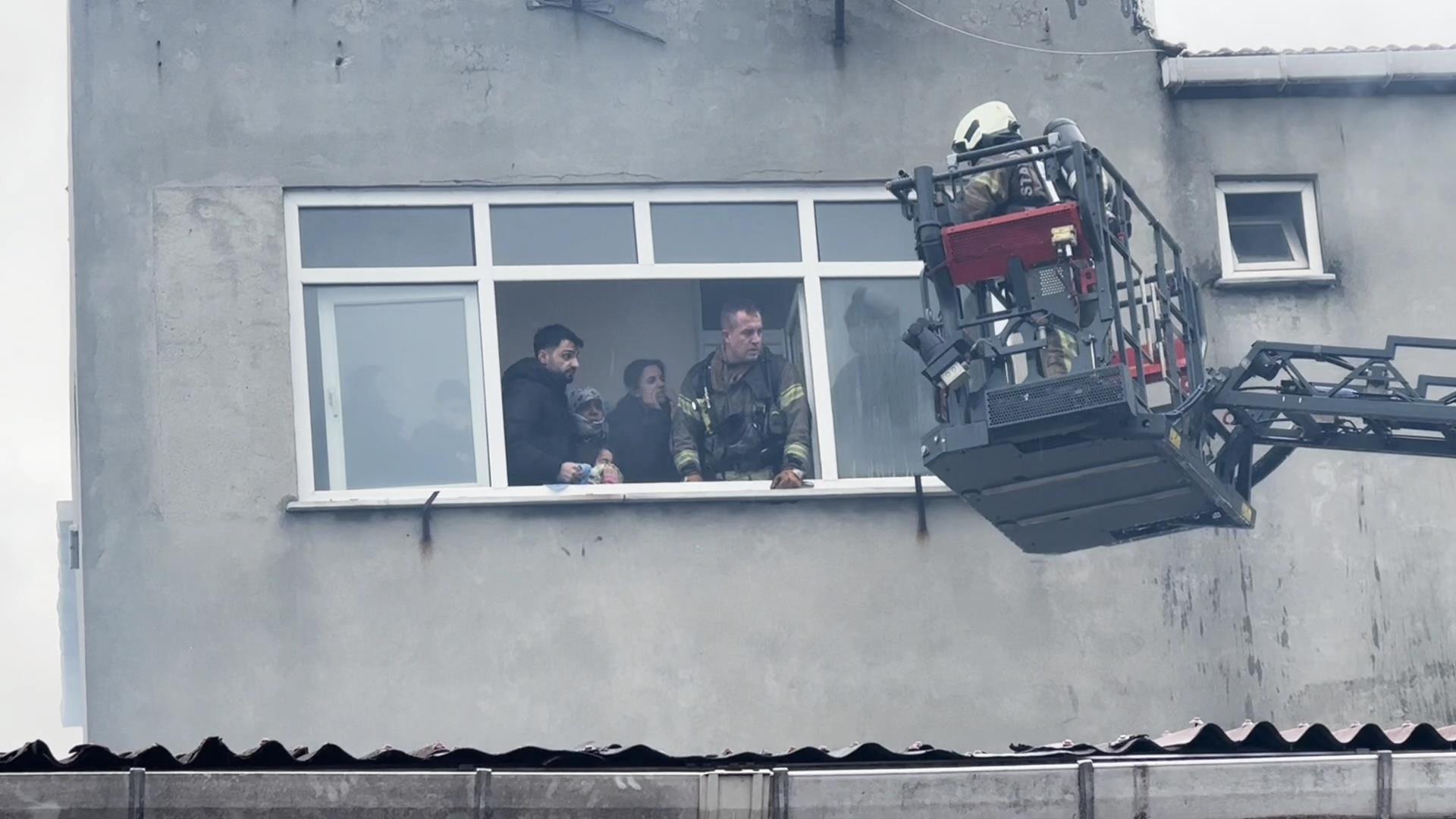 Binadan mahsur kalanlar itfaiye ekipleri tarafından kurtarıldı. Yangın nedeniyle 2'nci katta duvar yıkılırken, söndürme çalışmaları sürüyor.