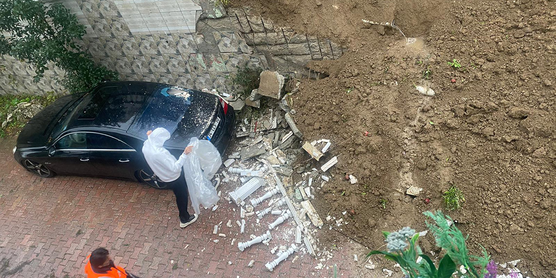 Büyükçekmece’de istinat duvarı çöktü. Site sakinlerinden Pınar Özer Aydın, “Binaların boşaltılması mühürlenmesi gerekiyor” dedi.