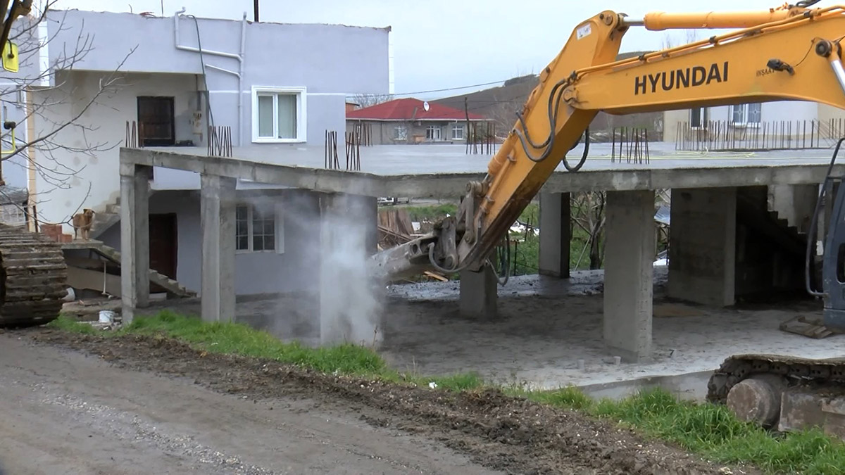 Büyükçekmece’de kaçak yapıldığı tespit edilen 24 yapı geniş güvenlik önlemleri altında yıkıldı.