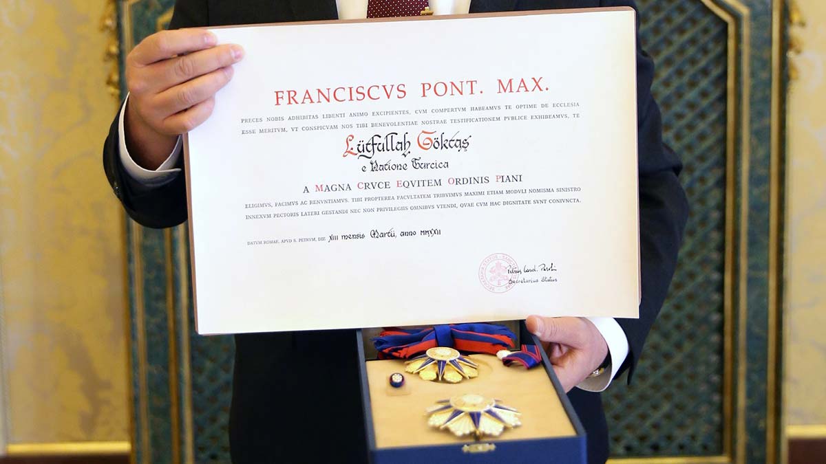Türkiye’nin Vatikan Büyükelçisi Lütfullah Göktaş’a, Vatikan Devlet Başkanı ve Katoliklerin ruhani lideri Papa Francis tarafından, ‘Pius Nişanı’ (Vatikan Devlet Nişanı) verildi.