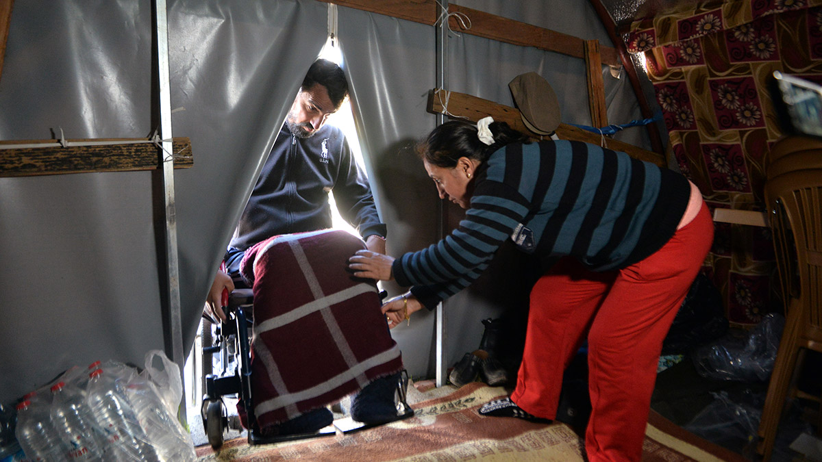 Engelli olduğu için çadıra giriş ve çıkışının zor olduğunu, içerideki şartların kendisine uygun olmadığını belirten Teker, “Benim gibi bir sürü engelli depremzede var. Onların adına da konuşuyorum. Bizim özel ihtiyaçlarımız daha fazla olduğu için bunun göz önünde bulundurulmasını istiyorum. Çadırda tuvalet ve banyomuz yok. Bu nedenle çok zorlandığımız zaman orta hasarlı evimize giriyoruz. Evimde bana özel bir rampa vardı ancak depremde yarısı çöktü. Giriş ve çıkışı da zor sağlıyoruz. İhtiyacımızı giderdikten sonra hemen çıkıyoruz” diye konuştu.